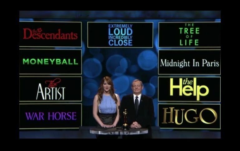 Entretenimiento | La película en 3D de Martin Scorsese resulta mencionada en 11 ocasiones ''Hugo'' acapara las nominaciones a los Oscar La película en 3D de Martin Scorsese resulta mencionada en 11 ocasiones Por: AFP 24 de enero de 2012 - 07:06 hs LOS ANGELES, ESTADOS UNIDOS (24/ENE/2012).- "Hugo", la prodigiosa aventura en 3D de Martin Scorsese, obtuvo 11 nominaciones al Oscar este martes, una más que la película francesa muda "The Artist", que aspira a 10 estatuillas en los principales premios del cine en Hollywood. Las otras dos películas más nominadas a los premios de la Academia son el film de béisbol "Moneyball", protagonizado por Brad Pitt, y la épica del veterano director Steven Spielberg, "War Horse", cada una con seis nominaciones. Asimismo, la película animada española "Chico & Rita", de Fernando Trueba y Javier Mariscal, fue nominada a mejor largometraje animado y el compositor español Alberto Iglesias a mejor música original por la partitura de "Tinker Tailor Soldier Spy". "Hugo" está nominada en la categoría Mejor Película, en la que se enfrenta a otras ocho películas, entre ellas "The Artist", una de las favoritas para los Oscar tras varios galardones y nominaciones en otros premios de la industria del cine. Las otras nominadas a mejor película son "The Descendants", "Extremely Loud and Incredibly Close", "The Help", "Midnight in Paris", "Moneyball", "The Tree of Life" y "War Horse". El mexicano Demian Bichir, en tanto, fue nominado a Mejor Actor por su papel en "A Better Life". Competirá con Jean Dujardin, por "The Artist", Clooney por "The Descendants", Pitt por "Moneyball", y Gary Oldman por "Spy Soldado Tinker Tailor". Entre las nominadas a Mejor Actriz está Meryl Streep, como se esperaba, por su papel como la ex primera ministra británica Margaret Thatcher en "The Iron Lady". También competirán en esa categoría Glenn Close, por su travestismo en el papel de "Albert Nobbs", Viola Davis por el drama sobre los derechos civiles "The Help", Michelle Williams por su interpretación de Marilyn Monroe en "My Week with Marilyn" y Rooney Mara por el film basado en el best seller sueco Millenium, "The Girl with the Dragon Tattoo". Los 84 premios de la Academia de Hollywood se entregarán en una gala el 26 de febrero. La lista de nominados es la siguiente: Mejor Película "The Artist" "The Descendants" "Extremely Loud & Incredibly Close" "The Help" "Hugo" "Midnight in Paris" "Moneyball" "The Tree of Life" "War Horse" * Mejor Actor Principal Demian Bichir - "A better life" George Clooney - "The descendants" Jean Dujardin - "The artist" Gary Oldman - "Tinker tailor soldier spy" Brad Pitt -"Moneyball" * Mejor Actriz Principal Glenn Close - "Albert Nobbs" Viola Davis - "The Help" Rooney Mara - "The Girl with the Dragon Tatoo" Meryl Streep -"The Iron Lady" Michelle Williams -"My Week with Marilyn" * Mejor Actor Secundario Kenneth Branagh - "My Week with Marilyn" Jonah Hill - "Moneyball" Nick Nolte - "Warrior" Christopher Plummer - "Beginners" Max von Sydow - "Extremely Loud & Incredibly Close" * Mejor Actriz Secundaria Bérénice Bejo - "The Artist" Jessica Chastain - "The Help" Melissa McCarthy - "Bridesmaids" Janet McTeer - "Albert Nobbs" Octavia Spencer - "The Help" * Mejor Director Woody Allen - "Midnight in Paris" Michel Hazanavicius - "The Artist" Terrence Malick - "The Tree of Life" Alexander Payne - "The Descendants" Martin Scorsese - "Hugo" * Mejor Película en Lengua Extranjera "Bullhead" - Michael R. Roskam (Bélgica) "Footnote" - Joseph Cedar (Israel) "In Darkness" - Agnieszka Holland (Polonia) "Monsieur Lazhar" - Philippe Falardeau (Canadá) "A Separation" - Asghar Farhadi (Irán) * Mejor Guión Original "The Artist" - Michel Hazanavicius "Bridesmaids" - Kristen Wiig y Annie Mumolo "Margin Call" - J.C. Chandor "Midnight in Paris" - Woody Allen "A Separation" - Asghar Farhadi * Mejor Guión Adaptado "The Descendants" - Alexander Payne, Nat Faxon y Jim Rash "Hugo" - John Logan "The Ides of March" - George Clooney, Grant Heslov, Beau Willimon "Moneyball" - Steven Zaillian, Aaron Sorkin y Stan Chervin "Tinker Tailor Soldier Spy" - Bridget O'Connor y Peter Straughan * Mejor Película de Animación "A Cat in Paris" "Chico & Rita" "Kung Fu Panda 2" "Puss in Boots" "Rango" * Mejor Fotografía "The Artist" - Guillaume Schiffman "The Girl with the Dragon Tattoo" - Jeff Cronenweth "Hugo" - Robert Richardson "The Tree of Life" - Emmanuel Lubezki "War Horse" - Janusz Kaminski * Mejor Realización "The Artist" - Anne-Sophie Bion y Michel Hazanavicius "The Descendants" - Kevin Tent "The Girl with the Dragon Tattoo" - Angus Wall y Kirk Baxter "Hugo" - Thelma Schoonmaker "Moneyball" - Christopher Tellefsen * Mejor Dirección Artística "The Artist" - Laurence Bennett y Gregory S. Hooper "Harry Potter and the Deathly Hallows: Part 2" - Stuart Craig y Stephenie McMillan "Hugo" - Dante Ferretti y Francesca Lo Schiavo "Midnight in Paris" - Anne Seibel y Hélène Dubreuil "War Horse" - Rick Carter y Lee Sandales * Mejor Vestuario "Anonymous" - Lisy Christl "The Artist" - Mark Bridges "Hugo" - Sandy Powell "Jane Eyre" - Michael O'Connor "W.E." - Arianne Phillips * Mejor Maquillaje "Albert Nobbs" "Harry Potter and the Deathly Hallows: Part 2" "The Iron Lady" * Mejor Banda Sonora Original "The Adventures of Tintin" - John Williams "The Artist" - Ludovic Bource "Hugo" - Howard Shore "Tinker Tailor Soldier Spy" - Alberto Iglesias "War Horse" - John Williams * Mejor Canción Original "The Muppets 2 - Bret McKenzie("Man or Muppet") "Rio" - Sergio Mendes, Carlinhos Brown y Siedah Garrett ("Real in Rio") * Mejor Mezclado de Sonido "The Girl with the Dragon Tattoo" "Hugo" "Moneyball" "Transformers: Dark of the Moon" "War Horse" * Mejor Edición de Sonido "Drive" "The Girl with the Dragon Tattoo" "Hugo" "Transformers: Dark of the Moon" "War Horse" * Mejores Efectos Visuales "Harry Potter and the Deathly Hallows: Part 2" "Hugo" "Real Steel" "Rise of the Planet of the Apes" "Transfor