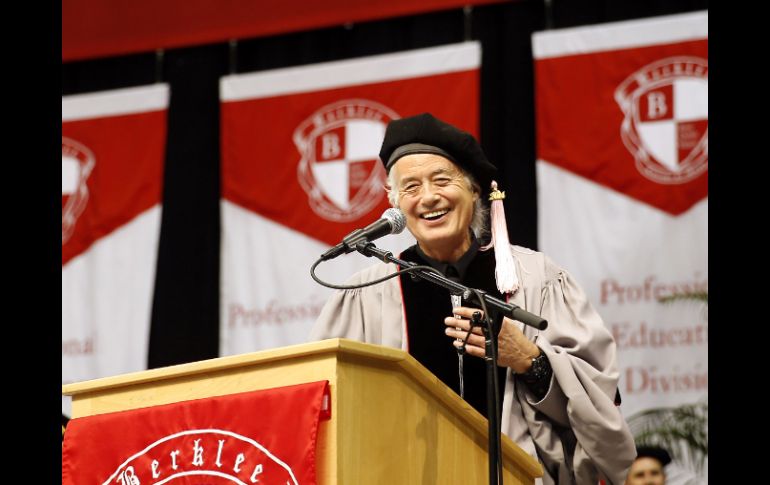 Entretenimiento | El exguitarrista, emitió un discurso de graduación a casi 900 alumnos Jimmy Page recibe doctorado honorario en Boston El exguitarrista, emitió un discurso de graduación a casi 900 alumnos Por: AP 10 de mayo de 2014 - 17:57 hs Page dijo a los egresados que su amor por la música los sontendrá a través de los giros y vueltas que ésta de adelante. AP / BOSTON, ESTADOS UNIDOS (10/MAY/2014).- Jimmy Page recibió el sábado un doctorado honorario de la Universidad Berklee de Música en Boston. El exguitarrista de la banda inglesa Led Zeppelin pronunció el discurso de graduación a casi 900 alumnos de esta universidad privada conocida por su programa de música, diciéndoles que su amor por ésta los sostendrá a través de los giros y vueltas inesperados que les esperan más adelante. La casa de estudios también le entregó doctorados honorarios al grupo Motown y a Valerie Simpson, cantautora de R&B; a la pianista de jazz y educadora Geri Allen, y a Thara Memory, fundador de la orquesta juvenil de jazz del Programa Estadounidense de Música. Page era el guitarrista de la banda que fusionó el blues, el R&B y el rock 'n' roll para generar un nuevo sonido de rock pesado en la década de 1970. Se disolvió en 1980. Temas Música Led Zeppelin Doctor Honoris Lee También Fiestas de Octubre 2025: cartelera por fecha en el Auditorio Benito Juárez Napoleón une su voz con La Sonora Dinamita en una colaboración inédita Se filtran nuevos ADIDAS diseñados por Bad Bunny (FOTOS) ¿Dónde ver "Building the Band"?, la última aparición de Liam Payne Recibe las últimas noticias en tu e-mail Todo lo que necesitas saber para comenzar tu día Registrarse implica aceptar los Términos y Condiciones