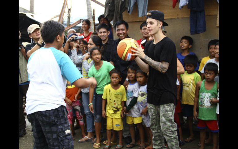 Entretenimiento | El cantante canadiense visitó Tacloban, firmó autógrafos y convivió con los niños Justin Bieber canta a supervivientes de tifón en Filipinas El cantante canadiense visitó Tacloban, firmó autógrafos y convivió con los niños Por: SUN 10 de diciembre de 2013 - 10:15 hs Justin Bieber fue bien recibido por la gente filipina. AP / TACLOBAN, FILIPINAS (10/DIC/2013).- El canadiense Justin Bieber visitó a supervivientes del tifón "Haiyan" en Filipinas. En fotografías difundidas por agencias de noticias se puede ver al intérprete de 19 años con pantalón de estampado militar, gorra y playera negras. Bieber se dio tiempo de jugar basquetbol, firmar autógrafos y convivir con algunos niños en la zona de Tacloban, una de las más afectadas por el tifón. También interpretó canciones navideñas y algunos de sus éxitos. En su cuenta de Twitter @JustinBieber, el cantante difundió una campaña de ayuda "Give Back Philippines", que lleva ya más de 600 mil dólares recaudados. Temas Cantantes Desastres Naturales Filipinas Justin Bieber Recibe las últimas noticias en tu e-mail Todo lo que necesitas saber para comenzar tu día Registrarse implica aceptar los Términos y Condiciones