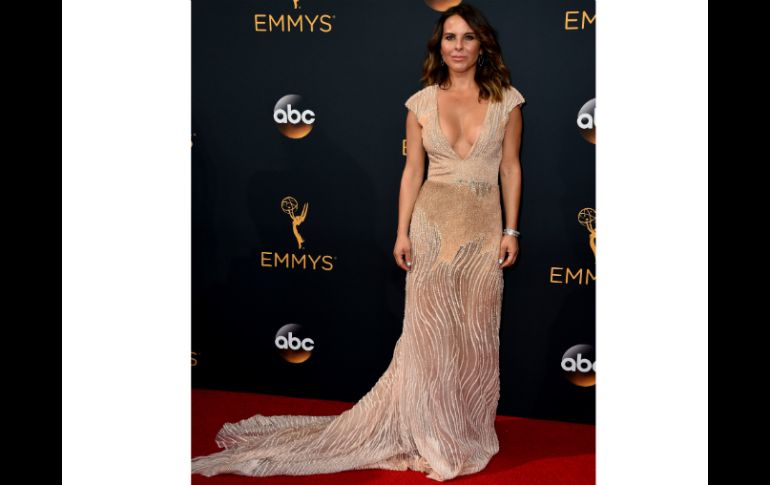 CIUDAD DE MÉXICO (19/SEP/2016).- La actriz mexicana Kate del Castillo acudió a la entrega 68 de los premios Emmy, a lo mejor de la televisión en Estados Unidos.En una fotografía distribuida por la agencia “AP” se puede ver a Kate posando a su paso por la alfombra roja del Teatro Microsoft de Los Ángeles.Del Castillo lució un vestido color nude con transparencias en las piernas y un gran escote, del diseñador Antonio Grimaldi.En imágenes que circularon en Instagram se le vio llegar junto al productor Danna Brunetti.Hace uno días, Kate “explotó” en Instagram ante la visita de Donald Trump a México, pues señaló que ella no puede entrar al país y él, que ha criticado a los mexicanos, sí puede.