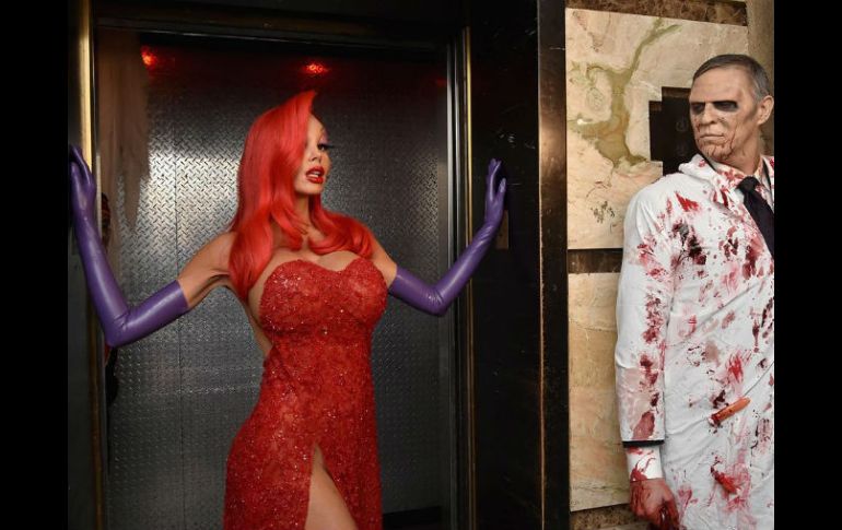 La también conductora lució irreconocible como el personaje de película y para lograr tal efecto se sometió a un procedimiento que además de maquillaje, peluca y pestañas postizas requirió de prótesis para modificar la forma de su rostro así como el tamaño de su busto y trasero.Klum compartió imágenes de su transformación a través de su cuenta en Instagram.El resultado fue todo un éxito, pues su disfraz resultó uno de los más comentados en el mundo de la farándula en "Hollywod".