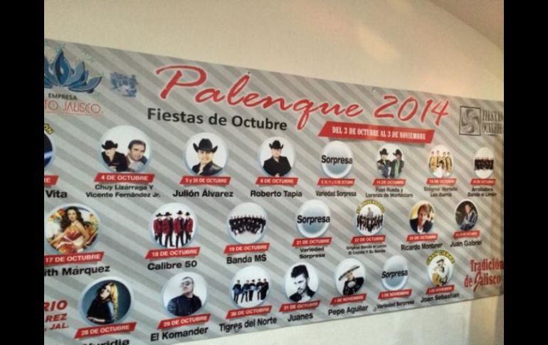 Entretenimiento | 'El Sol de México' se presentará los días 9,10,11 y 12 de octubre Luis Miguel y Juanes, confirmados en el Palenque 'El Sol de México' se presentará los días 9,10,11 y 12 de octubre Por: EL INFORMADOR 7 de agosto de 2014 - 13:33 hs Juan Gabriel, Edith Márquez, Yuridia, Joan Sebastian y Pepe Aguilar son otros de los artistas que se presentarán. / GUADALAJARA, JALISCO (07/AGO/2014).- "El Sol de México", Luis Miguel, deslumbrará en el Palenque de las Fiestas de Octubre de Guadalajara. Y es que será la primera vez que el cantante esté interpretando sus éxitos en un foro como este y la experiencia para el público será de lo mejor pues quienes asistan lo verán muy de cerca. Las fechas confirmadas son el 9,10,11 y 12 de octubre y los precios más altos para verlo estarían arriba de los tres mil pesos, es la previsión de Román Ramírez, coordinador de comunicación del Palenque. Aún así el público podrá conocer los costos del boletaje el próximo 9 de agosto a través de la página web de las Fiestas de Octubre. Otra de las sorpresas del cartel es Juanes quien también estará por primera vez en un Palenque, él estará cantando el día 31 de octubre. Para quienes esperaban ver a Alejandro Fernández en estas acostumbradas fiestas a las que siempre asiste, este año no será posible, los organizadores dijeron que el hijo de Vicente tiene agenda llena. La intención de esta edición es incluir música para todos los gustos y en ese tenor, después de varios años Juan Gabriel estará también en el Palenque los días 24 y 25 de octubre. Edith Márquez y Yuridia son las únicas voces femeninas del cartel, una estará el 17 y la otra el día 28 respectivamente. El rey del jaripeo, Joan Sebastian estará el 3 de noviembre y Pepe Aguilar el 1 de noviembre. Otras figuras presentes en el Palenque son: Franco de Vita el día 3, Chuy Lizárraga y Vicente Fernández Jr. el 4, Roberto Tapia el 8, Fidel Rueda y Lorenzo de Monteclaro el 14, Enigma Norteño el 15, Banda MS el 19, La Arrolladora el 16, Calibre 50 el 18, La Original Banda el Limón el 22, Ricardo Montaner el 23, Julión Álvarez 26, Komander 29 y Los Tigres del Norte el 30. EL INFORMADOR / ENRIQUE ESPARZA Temas Luis Miguel Conciertos Juanes Palenque de las Fiestas de Octubre Fiestas de Octubre Lee También Vive Latino 2026: Conoce el cartel completo, fechas y preventa Tecate Pal Norte: ¿Cuánto cuestan los boletos y qué incluye cada uno? Revelan el número de personas no localizadas tras lluvias "atípicas" ¡Korn regresa a México! Esto debes saber sobre la venta de boletos Recibe las últimas noticias en tu e-mail Todo lo que necesitas saber para comenzar tu día Registrarse implica aceptar los Términos y Condiciones