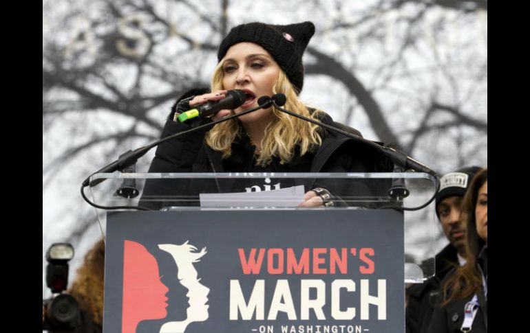 WASHINGTON, ESTADOS UNIDOS (21/ENE/2017).- La cantante Madonna apareció hoy por sorpresa en la multitudinaria "Marcha de las Mujeres" de Washington, una protesta que exhibió el plantel de artistas que no logró Donald Trump para su investidura este viernes como presidente de Estados Unidos.Madonna, provocadora y combativa, dijo que había pensado en "volar por los aires" la Casa Blanca desde que Trump ganó las elecciones del 8 de noviembre, pero que, en lugar de eso, eligió "el amor".Acto seguido, proclamó que "la revolución empieza aquí", una revolución "de amor", y llamó "a la rebelión, a nuestra negativa como mujeres a aceptar esta nueva era de la tiranía".Después, "enfadada y escandalizada", le soltó unos cuantos "qué te jodan" ("fuck you"), a Trump en su primer día completo como líder del país.Con la misma fuerza, bailó y cantó su éxito de 1989 "Express yourself" (Exprésate), sobre un escenario situado en los alrededores del Capitolio, donde comenzaron a concentrarse los manifestantes desde primera hora de la mañana.La cantante Alicia Keys, con un torrente de energía, alabó la "fortaleza" de las (y los) que marcharon y les cantó un oportuno "This girl is on fire".Antes, las actrices Scarlett Johanson, Ashley Judd y América Ferrera habían enviado duros mensajes de resistencia a Trump."El presidente no es Estados Unidos. Nosotros somos Estados Unidos y estamos aquí para quedarnos", proclamó Ferrera, de origen hondureño.El cineasta Michael Moore quiso ser más gráfico y rompió una portada de periódico de hoy con la noticia de la investidura de Trump.Entre las celebridades de la marcha también estuvieron las actrices Amy Schumer y Ashley Judd, la cantante Janelle Monáe y la periodista e icono feminista de Estados Unidos, Gloria Steinem.Otro de los personajes conocidos que pudo verse en la manifestación fue el ex secretario de Estado John Kerry, hasta este viernes jefe de la diplomacia de Estados Unidos, que paseaba con su perro en zapatillas deportivas y chaqueta de aviador.Grandes nombres de la música y el cine, como Beyoncé, Kate Perry o Charlize Theron apoyaron la protesta desde otros puntos del país, con grandes manifestaciones en Nueva York, Los Ángeles, Boston, Chicago, Filadelfia o San Francisco.Hillary Clinton, a la que apoyaron en las elecciones muchos de los que hoy participaron en la marcha, no estuvo en la protesta pero envío a primera hora un mensaje agradecido en Twitter por, en sus palabras, "hablar y marchar por nuestros valores".Sorprendentemente, hasta ahora Trump -que acostumbra a cargar de inmediato contra quienes se le enfrentan- no se ha pronunciado sobre la manifestación, como tampoco lo hizo el viernes sobre las protestas en su contra durante la investidura.Centenares de miles de mujeres -y muchos hombres también- marcharon hoy en Washington para defender los derechos que ven amenazados por el nuevo presidente.La "Marcha de las Mujeres", convocada casi al minuto de que el magnate neoyorquino ganara las elecciones, desbordó la gran explanada de jardines del National Mall, el centro monumental de la capital, con al menos medio millón de personas.Lleva mujeres en su nombre pero es una protesta mucho más amplia: hombres y mujeres de todas las edades han salido a defender la diversidad, la igualdad, la inclusión, los derechos reproductivos, y a condenar el racismo y la misoginia que ven en Trump.