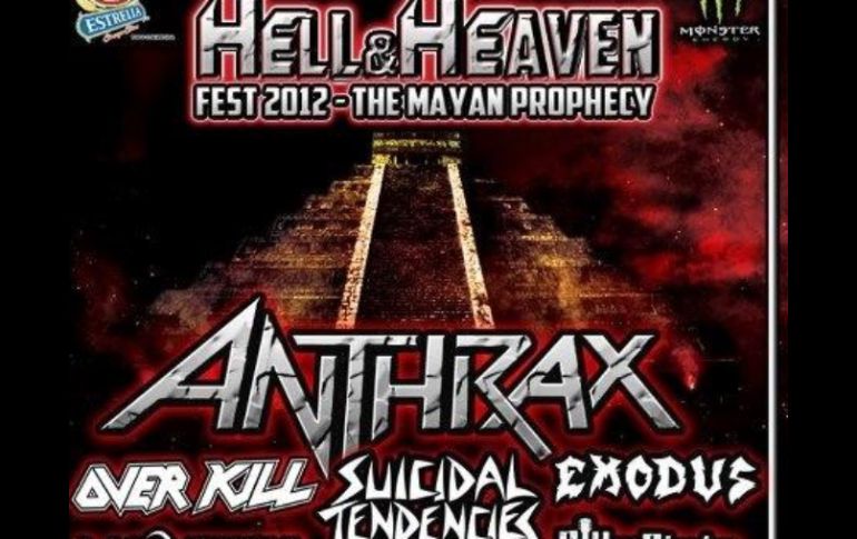 Entretenimiento | Está cerca la tercera edición del festival metalero más grande de México Metaleros unidos en el Hell & Heaven Fest 2012 Bandas de talla internacional y nacional confirman su asistencia a la tercera edición del festival metalero más grande de México Por: NTX 18 de septiembre de 2012 - 11:37 hs Parte del cartel del próximo Hell & Heaven Metal Fest. ESPECIAL / GUADALAJARA, JALISCO (18/SEP/2012).- Un gran número de bandas han confirmado su asistencia a la tercera edición del Hell & Heaven Fest, que el 27 de octubre próximo se realizará en tres escenarios de la Calle 2 de Guadalajara, Jalisco. Entre las agrupaciones que figurarán en el cartel están Anthrax, Suicidal Tendencies, Overkill, Exodus, Moonspell, Warbringer, Gilby Clarke y Heathen. Así como Killus, Transmetal, Luzbel, Black Oil, Pro-fe-cia, Attackhead, Makina, Mortuary, Koltdown, Nigthbreed, Thell Barrio, Ira, Intoxxxicated, Draksen, Buffalo Grillz, Subhuman, Wrecker, Cemican, Colectivo Suicida, Lecumberry, Thantra, Muluc Pax y Leider. El encuentro musical se fundó en 2010 con la presencia de los mejores grupos nacionales e internacionales de metal, por lo que el exigente público metalero tendrá un interesante cartel en la próxima edición. El sitio de Facebook del festival recibe más de un millón de visitas mensuales y cuenta con 42 mil suscriptores, lo que la cataloga como la comunidad metalera virtual más grande de América Latina. Durante las dos pasadas ediciones, los amantes del género provenientes de las 32 entidades del país viajaron a Guadalajara, convirtiendo a la ciudad en el epicentro del movimiento "underground" de México. El sábado 19 de noviembre de 2011 se llevó a cabo la segunda edición y se presentaron en cinco escenarios 61 bandas que ofrecieron 15 horas de música en vivo, con la asistencia de 15 mil personas. Temas Música Conciertos Calle 2 Heavy Metal Lee También Fallece John Lodge, bajista de The Moody Blues Billie Eilish fue agredida por fan en pleno concierto en Miami Los mejores eventos de entretenimiento del 10 al 16 de octubre de 2025 Fiestas de Octubre 2025: cartelera por fecha en el Auditorio Benito Juárez Recibe las últimas noticias en tu e-mail Todo lo que necesitas saber para comenzar tu día Registrarse implica aceptar los Términos y Condiciones