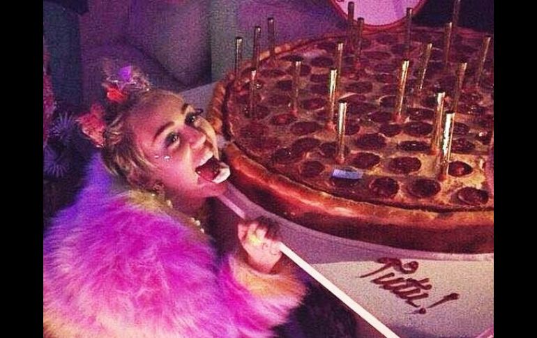 Entretenimiento | La cantante ha compartido en redes diversas imágenes donde la constante es la pizza Miley Cyrus festeja cumpleaños con polémicas fotos La cantante ha compartido en redes diversas imágenes donde la constante es la pizza Por: SUN 23 de noviembre de 2014 - 13:06 hs Al parecer, la intérprete es amante de esta comida italiana. INSTAGRAM / @mileycyrus CIUDAD DE MÉXICO (23/NOV/2014).- Miley Cyrus, se ha vista envuelta en diversos escándalos que a su vez le han sumado fama y seguidores alrededor del mundo. Desde hace algunos días, la intérprete ha subido en su cuenta de Twitter diversas imágenes donde la constante es la pizza. Sí, al parecer la intérprete es amante de esta comida, pues ha editado varias fotos actuales y de cuando era una niña, y siempre la pizza está presente. Algunas instantáneas son más subidas de tono a pesar de la intención por mostrarlas chistosas. Cyrus se ha sumado también como protagonista de una campaña de pantimedias italianas, en la que con bailes sensuales muestra sus piernas modelando las piezas de Golden Lady Company. Temas Farándula Cantantes Miley Cyrus Instagram Escándalos en redes sociales Lee También Lolita Cortés confiesa si volvería a criticar a Yuridia por su carrera en la actualidad Spotify: mejora la calidad de sonido GRATIS de esta forma ¿Cuál era la relación entre el barco pirata hundido en Vallarta y Colón? ¿Qué hundió al barco pirata "Marigalante" en Vallarta? Recibe las últimas noticias en tu e-mail Todo lo que necesitas saber para comenzar tu día Registrarse implica aceptar los Términos y Condiciones