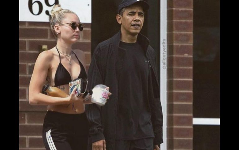 GUADALAJARA, JALISCO (02/AGO/2017).- La cantante Miley Cyrus ha dado de qué hablar nuevamente, pero esa vez se debe a una foto que compartió en su cuenta de Instagram con el ex presidente de Estados Unidos, Barack Obama.En la imagen aparece la también actriz junto a Obama, ambos están caminando y visten deportiva, acompañado con el mensaje: “Nunca posteó imágenes de pap pero... @barackobama”.La fotografía de ambos personajes es falsa y fue la misma Cyrus quien la editó. Ya cuenta con casi dos millones de “me gusta” y ha generado todo tipo de reacciones entre sus fanáticos.