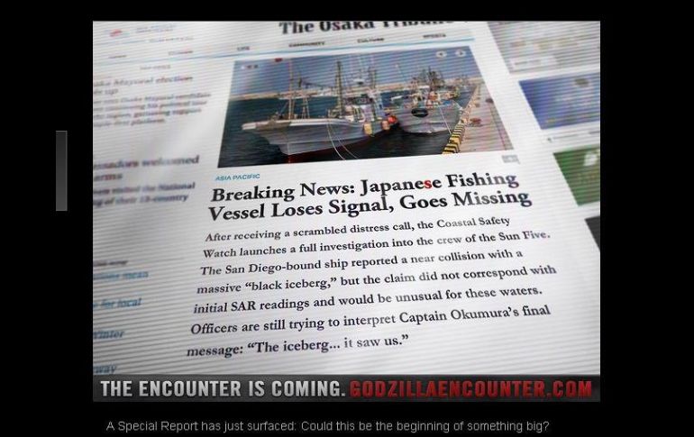 Entretenimiento | Godzilla nuevamente invadirá la pantalla Noticias de película causan revuelo en redes sociales Asegura que un velero de pesca japonés ha desaparecido y las últimas palabras del capitán con los guarda costas fueron: ''El iceberg nos vió'' Por: EL INFORMADOR 15 de julio de 2013 - 10:27 hs GUADALAJARA, JALISCO (15/JUL/2013).- Un nuevo sitio web le está dando la vuelta al mundo con notas que han sorprendido a más de uno de sus lectores. Se trata del sitio Godzillaencounter.com un sitio web lanzado, especialmente, para promocionar la película Godzilla que será estrenada hasta el mes de mayo del 2014. En la página, lanzada apenas la semana pasada, se pueden apreciar tres publicaciones en las que se leen sucesos anormales que han tenido lugar en el mar. Uno de ellos asegura que un velero de pesca japonés, ha desaparecido y las últimas palabras del capitán, con los guarda costas fueron "El iceberg nos vió". Se espera que en esta página se publiquen los trailers y algunos adelantos de la cinta dirigida por Gareth Edwards. A la par del sitio, Edwards, lanzó un video desde el set en el que se graba la película en dónde da otras pistas sobre la trama de la cinta. EL INFORMADOR/ PATRICIA GALLARDO Link a la página: http://godzillaencounter.com/ Temas Películas Japón Ciencia Ficción Lee También 'KPop Demon Hunters' llega a cines de México ¿Cuál es la mejor película de Guillermo del Toro según la IA? Los dos estrenos imperdibles de Cinépolis este 16 de octubre Cinemex trae de vuelta a sus salas estos clásicos del terror Recibe las últimas noticias en tu e-mail Todo lo que necesitas saber para comenzar tu día Registrarse implica aceptar los Términos y Condiciones