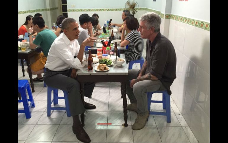 Entretenimiento | El presidente de EU se reúne con el presentador para la serie 'Parts Unkown' Obama cena con Anthony Bourdain en Vietnam El presidente de EU se reúne con el presentador para la serie 'Parts Unkown' Por: EL INFORMADOR 23 de mayo de 2016 - 20:10 hs Bourdain tuiteó que la cena costó seis dólares y que él pagó la cuenta. TWITTER / @Bourdain NUEVA YORK, ESTADOS UNIDOS (23/MAY/2016).- El presidente Barack Obama cenó en Hanoi, Vietnam, el lunes con el chef y presentador de CNN Anthony Bourdain, cuyo programa "Parts Unknown" es una de las series más populares del canal. Bourdain se reunió con Obama para discutir el propósito del viaje del presidente estadounidense a Asia y su interés en la gente, la comida y la cultura de Vietnam, dijo CNN. Una multitud se reunió fuera del restaurante Bun cha Huong Lien donde cenaron y ovacionaron al presidente cuando salió. Obama le dio la mano a muchas personas e hizo varios saludos antes de irse en una caravana. Bourdain tuiteó después que la cena costó seis dólares y que él pagó la cuenta. El programa de Bourdain ha estado en CNN desde 2013. En cada episodio el chef viaja a diferentes partes del mundo para explorar su cultura, especialmente al compartir la cocina tradicional de la zona. La entrevista con Obama estará incluida en la novena temporada de "Parts Unknown" que comenzará en septiembre. Temas Televisión Barack Obama Vietnam Lee También Dónde ver EN VIVO los juegos de MLB, HOY 10 de octubre ¿Dónde ver EN VIVO el partido amistoso México vs Colombia? Dónde ver EN VIVO el México vs Argentina por el Mundial Sub-20 “Papás por siempre”: un regreso que celebra el poder del amor Recibe las últimas noticias en tu e-mail Todo lo que necesitas saber para comenzar tu día Registrarse implica aceptar los Términos y Condiciones