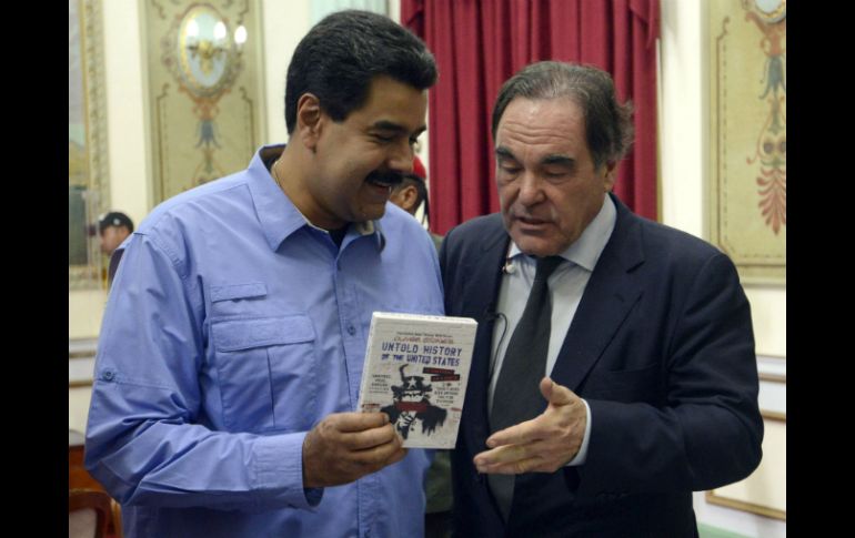 "Oliver Stone vino a nuestro país a filmar una película sobre el 'gigante' Chávez", indicó la funcionaria a través de su cuenta de la red social Twitter. Rodríguez agregó en su mensaje que el director de "Platoon", "JFK" y "Nacido el 4 de julio" llegó a Venezuela para afinar ideas acerca de la película sobre la vida del líder de la revolución bolivariana. El presidente venezolano Nicolás Maduro recibió anoche en el presidencial Palacio de Miraflores al cineasta norteamericano Oliver Stone, quien le entregó una copia de su nuevo documental "La historia no contada de Estados Unidos". El mandatario y el cineasta crítico de la política estadunidense recorrieron las instalaciones de la sede del Poder Ejecutivo venezolano, que culminó en el despacho donde el presidente Hugo Chávez pronunció su último discurso. Stone conoció a Chávez en diciembre de 2007 y lo eligió como protagonista de su documental "South of the Border", en el que analizó las políticas y los cambios sociales de América del Sur.