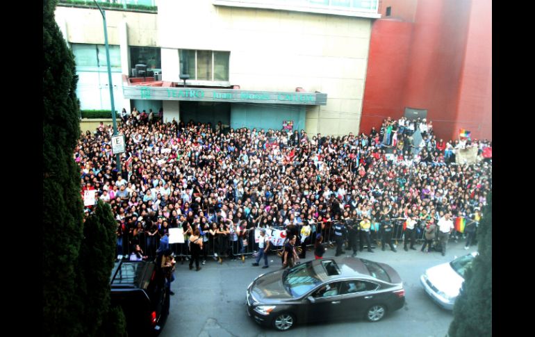 Entretenimiento | Los fans pudieron ver a los integrantes por unos segundos desde afuera del Four Seasons One Direction se asoman y desatan el furor de los fans Cientos de seguidores pudieron ver a los integrantes por unos segundos desde afuera del Four Seasons Por: SUN 25 de noviembre de 2015 - 15:49 hs El furor de los seguidores se desbordó y gritos de 'Te amo' retumbaron. NTX / P. Sánchez CIUDAD DE MÉXICO (25/NOV/2015).- Luego de larga espera, pero con el ánimo encendido por ver a One Direction las cientos de fans a las afueras del Four Seasons pudieron ver por unos segundos a dos de sus integrantes. Aunque los seguidores de la agrupación británica aguardaron desde las 7:00 horas de este miércoles a los alrededores de un hotel ubicado en Reforma, fue punto de las 13:45 cuando por una ventana del hotel Liam Payne -quien portaba un suéter gris- se asomó para saludar a los fans que se encontraban en las escalinatas del teatro “Juan Moisés Calleja”. Pese a solo permanecer unos segundos en la ventana, el furor de los seguidores se desbordó y gritos de "Te amo" y "Que baje", retumbaron. Diez minutos más tarde, otro de sus integrantes, el rubio Niall Horan quien llevaba puesta una playera blanca, se asomó por otra ventana lo cual provocó cientos de gritos ensordecedores. Aunque ninguno de los dos se quedó más de dos minutos ni pronunció palabra alguna tuvieron el tiempo suficiente para saludar y mandar besos a sus directioners. Temas Música Pop Grupos musicales One Direction Lee También Benny Ibarra celebra su nuevo comienzo en Guadalajara Fiestas de Octubre 2025: cartelera por fecha en el Auditorio Benito Juárez Ángel Covarrubias, la voz infantil que conquistó Zapopan "The Life of a Show Girl"; escúchalo en Apple Music por solo 9 pesos Recibe las últimas noticias en tu e-mail Todo lo que necesitas saber para comenzar tu día Registrarse implica aceptar los Términos y Condiciones
