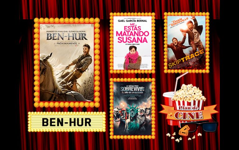 GUADALAJARA, JALISCO (18/AGO/2016).- La cartelera de cines en Guadalajara se actualiza este fin de semana con la llegada de seis películas y sobre cada una de ellas nos habla Arturo Garibay en esta nueva edición de Plan de Cine.La nueva versión de “Ben-Hur” arriba a los cines de nuestra ciudad, al igual que “Me estás matando Susana” con Gael García Bernal y “12 horas para sobrevivir: El año de la elección”, la tercera parte de la franquicia.Jackie Chan regresa con “Una preja dispareja”, y también se estrenan “El Plan de Maggie” y el filme “Epitafio”.No te pierdas una nueva entrega de 'Plan de Cine' todos los jueves en EL INFORMADOR.