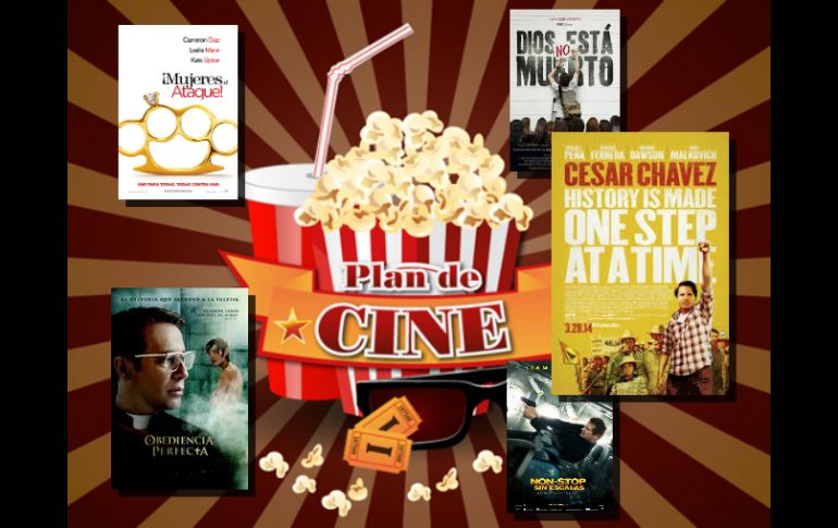 Entretenimiento | Conoce los cinco estrenos que llegan a la cartelera en este fin de semana largo Plan de Cine: César Chávez Conoce los cinco estrenos que llegan a la cartelera en este fin de semana largo Por: EL INFORMADOR 1 de mayo de 2014 - 17:10 hs ‘¡Mujeres al Ataque!’, ‘NonStop, Sin escalas’, ‘Obediencia Perfecta’ y ‘Dios no está muerto’, también a la pantalla grande. ESPECIAL / GUADALAJARA, JALISCO (01/MAY/2014).- Cinco nuevas películas irrumpen en la cartelera local. Conoce un poco más de las cintas que están llegando este fin de semana de puente y arma el mejor Plan de Cine. ‘ César Chávez’ muestra la madera que tiene Diego Luna como director. Esta película se enfoca en los esfuerzos y la vida de Chávez: un luchador social que logró marcar la diferencia con los trabajadores en Estados Unidos. ‘ ¡Mujeres al Ataque!’ Es una comedia protagonizada por Cameron Diaz y dirigida por Nick Cassavetes. La cinta cuenta la historia de una joven perdidamente enamorada que pronto descubre que su galán tiene -no solamente esposa-, sino que otra amante. ‘ NonStop, Sin escalas’ es la nueva cinta protagonizada por Liam Neeson. En esta interpreta a un agente que se encuentra encubierto en un vuelo comercial donde descubre que hay un criminal amenazando a los pasajeros y tendrá que descubrir el misterio que envuelve al antagonista, antes que sea demasiado tarde. ‘ Obediencia Perfecta’ es el filme mexicano dirigido por Luis Urquiza y protagonizado por Juan Manuel Bernal. Cuenta la historia de un joven seminarista que pronto descubrirá los oscuros secretos del padre al que considera su gran mentor. ‘ Dios no está muerto’ es un drama estadounidense que muestra a un joven que entra a la universidad y que se ve confrontado en su primer día de clases por su profesor de filosofía quien asegura que Dios no existe. Temas Cine Estrenos Cine Cameron Diaz Diego Luna Plan de Cine Lee También ¿Disney cancelará la saga "Tron" por el fracaso de su última película? ¿Qué hay de nuevo… en el cine? Transporte escolar, gran idea y eterna promesa Daniel Carrera presenta “La infalible” en el FICM Recibe las últimas noticias en tu e-mail Todo lo que necesitas saber para comenzar tu día Registrarse implica aceptar los Términos y Condiciones