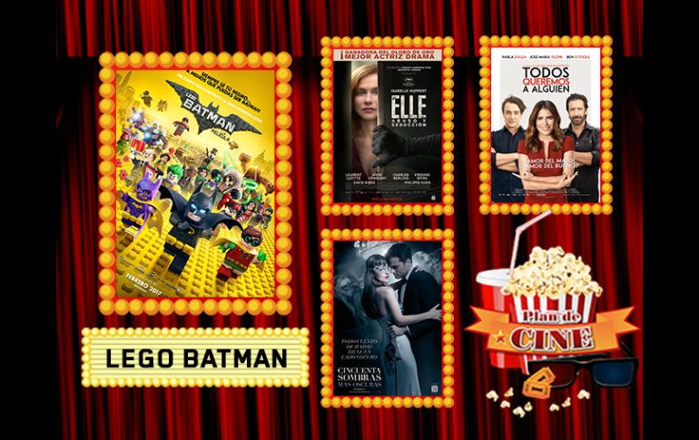 GUADALAJARA, JALISCO (09/FEB/2017).- Este fin de semana tenemos la llegada de cinco nuevas películas a la cartelera de cine de nuestra ciudad. Y para conocer un poco más Arturo Garibay nos habla un poco sobre cada una de ellas. Checa su comentario y arma tu Plan de Cine.La animación 'Lego Batman, la película' llega para adueñarse de la taquilla, al igual que 'Cincuenta sombras más oscuras'. Además tenemos el estreno de 'Elle, abuso y seducción', cinta que tiene a Isabelle Huppert en la contienda por el Oscar a Mejor actriz.También esta la otra nominada al Oscar 'Enemigo de todos' y la apuesta mexicana de la semana con 'Todos queremos a alguien', protagonizada por Karla Souza.¡Tenemos boletos!Asiste a la premiere de 'El que busca encuentra' este 13 de febrero en Cinépolis de La Gran Plaza. Participa por un pase doble en nuestras redes sociales.No te pierdas una nueva entrega de 'Plan de Cine' todos los jueves en EL INFORMADOR.