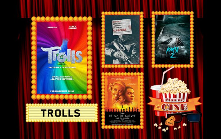 GUADALAJARA, JALISCO (03/NOV/2016).- Esta semana, la cartelera de cine de nuestra ciudad se renueva con cuatro películas, y sobre cada una de ellas nos habla Arturo Garibay en una edición más de Plan de Cine.“Trolls” es la gran apuesta animada y musical para esta semana, seguida de “El Contador”, con Ben Affleck y Anna Kendrick como protagonistas.También tenemos el estreno de “La reina de Katwe” de Disney y la película de horror mexicana “Kilómetro 31 2”.¡Tenemos regalos!Gana una de las libretas que Warner Bros. Pictures tienen para ti con motivo del estreno de 'El Contador'. Checa nuestras redes sociales para participar en la dinámica.No te pierdas una nueva entrega de 'Plan de Cine' todos los jueves en EL INFORMADOR.