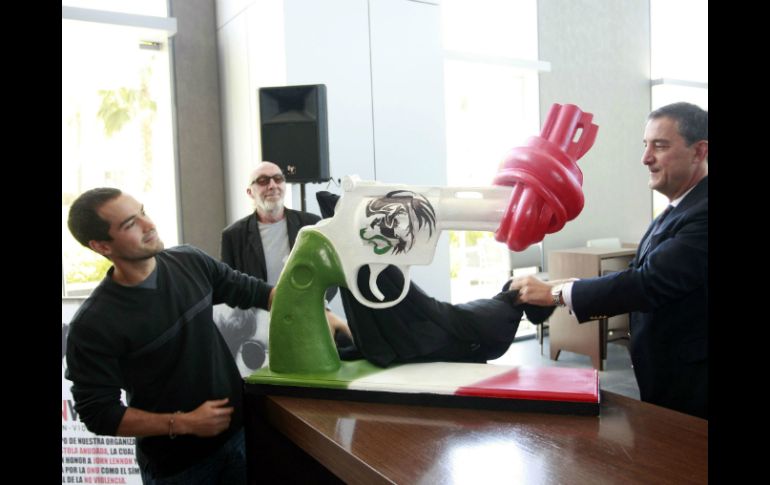 Entretenimiento | Él aportó la idea para crear la escultura develada hoy en Guadalajara Poncho Herrera devela escultura de exhibición ''Pistolas por la paz'' El actor encionó que el objetivo es dirigir la atención de niños y jóvenes hacia actividades culturales y deportivas Por: NTX 11 de febrero de 2013 - 20:35 hs El actor señaló que se tiene previsto llevar a cabo actividades relacionadas a este proyecto de paz. NTX / GUADALAJARA, JALISCO (11/FEB/2013).- El actor Poncho Herrera develó una nueva escultura que ya forma parte de la Exhibición Internacional "Pistolas por la paz", y se puede apreciar en el lobby de un conocido hotel de esta ciudad de hoy al próximo 11 de marzo. Herrera manifestó que él aportó la idea para crear la escultura develada hoy, que lleva el nombre de "Paz", la cual es una pistola con un nudo en la parte del cañón, y con los colores verde, blanco y rojo. Mencionó que el objetivo es dirigir la atención de niños y jóvenes hacia actividades culturales y deportivas, "para poder alejar la violencia de ellos con un mensaje de paz". El actor señaló que se tiene previsto llevar a cabo actividades relacionadas a este proyecto de paz, previo a la Copa Confederaciones y a la Copa Mundial de Futbol en Brasil. A su vez, el director de Non Violence Project México, Mauricio Bermúdez, dijo que la exposición "Pistolas por la paz" tiene 20 años "de viajar por todo el mundo, con el fin de acercar al público de forma gratuita y divertida la idea de los famosos sobre la no violencia y la paz". Comentó que ha sido grato contar con un joven comprometido como Poncho Herrera, "él siempre ha estado muy dispuesto a colaborar en nuestros proyectos de paz". Temas Farándula Actor- Actriz Alfonso Poncho Herrera Lee También Belinda denuncia a Lupillo Rivera Aliados UNIVA fortalece lazos en la educación Los mejores MEMES que dejó la gran final de La Casa de los Famosos México Alexis Ayala reacciona a los señalamientos de violencia por parte de Paty Díaz Recibe las últimas noticias en tu e-mail Todo lo que necesitas saber para comenzar tu día Registrarse implica aceptar los Términos y Condiciones