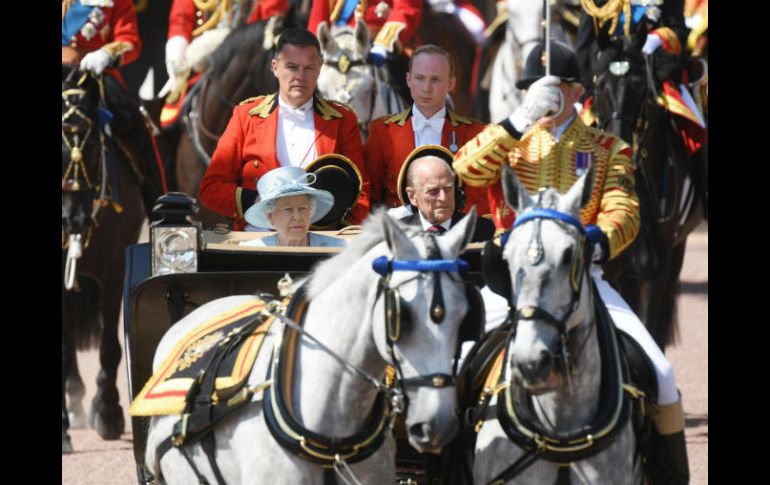 LONDRES, INGLATERRA (17/JUN/2017).- La reina Isabel II y miembros de la realeza celebraron el sábado el cumpleaños oficial número 91 de la monarca británica, con el desfile militar anual “Trooping the Colour” o “Desfile del estandarte”.Cientos de simpatizantes asistieron a la ceremonia en el corazón de Londres, beneficiados por un día soleado. La reina y su marido, el príncipe Felipe, montaron un carruaje abierto hacia el palacio de Buckingham, donde presenciaron la ceremonia desde un balcón.El príncipe Guillermo y el príncipe Carlos llegaron atrás, montando a caballo. La esposa de Guillermo, Catalina, y la esposa de Carlos, Camila, llegaron en otro carruaje con el príncipe Enrique. Como es la tradición, la reina celebra su cumpleaños oficial en junio cuando hay mejor tiempo, a diferencia de abril, el mes real de su nacimiento.El día comenzó con un tono sombrío cuando Isabel II y Felipe observaron un minuto de silencio en honor a las víctimas del incendio de una torre de apartamentos en Londres.