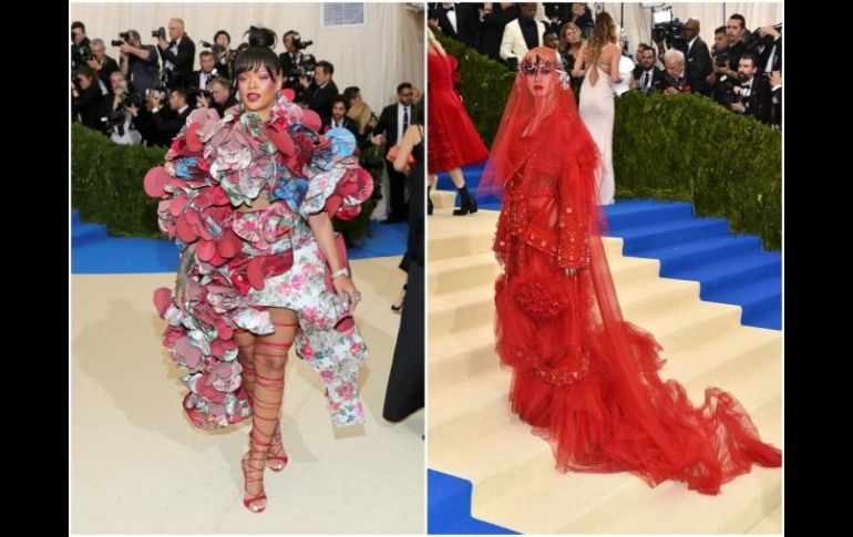 GUADALAJARA, JALISCO (01/MAY/2017).- La elegante Gala MET de Nueva York fue este lunes espacio de algunas sorpresas a cargo de las celebridades invitadas, sobre todo Katy Perry, quien asombró a medio mundo con su vestido y pese a que se esperaba una jornada que se caracterizara por sus provocaciones vanguardistas.El excéntrico look de la estrella pop contrastó incluso con el tema de este año de la exposición, vinculado con la vanguardista diseñadora japonesa Rei Kawakubo: Perry presentó un vestido rojo con vuelos, velo, cola y un tocado y, de inmediato, las redes sociales se volcaron a comentar el atuendo creado por John Galliano para Maison Margiela. Mucho mejor recibido fue otro atuendo nada convencional: el arquitectónico vestuario de Rihanna que, en contraste con la experiencia de Kate Perry, recibió más aplausos. La cantante de Barbados llevó un look de Comme des Garçons modelado originalmente por Anna Cleveland, con motivos florales.Blake Lively desfiló con un vestido dorado con una cauda adornada con plumas azules que le daba un aire de estrella de cine clásico, cortesía de Versace.Mientras que algunas de las celebridades del cine, la televisión, la moda, los deportes y la música que se dieron cita para la gala se sintieron inspirados por Kawakubo, otros causaron sensación con modelos más clásicos, como Jennifer Lopez que dio un aire de la década de 1950 en un vestido con una capa azul cielo de Valentino, creación de Pierpaolo Piccioli. Su novio, el exbeisbolista de origen dominicano Alex Rodríguez, posó muy sonriente junto a ella.Selena Gómez llegó con su novio The Weeknd con un delicado vestido blanco del diseñador de Coach Stuart Vevers. Madonna optó por el verde militar de Moschino, Tracee Ellis Ross usó azul rey y Kim Kardashian West, quien llegó sin Kanye West, un sencillo vestido blanco con mangas largas de Vivienne Westwood.Kylie Jenner pasó corriendo con un revelador vestido transparente de Atelier Versace y el cabello platino para complementarlo. Su hermana Kendall Jenner deslumbró con un escotado vestido negro cubierto con 85 mil cristales pintados a mano de la directora creativa de La Perla Julia Haart. El vestido tenía una enorme abertura diagonal del hombro hasta abajo de la cintura y requirió más de 160 horas de trabajo de 26 artesanos en cinco ciudades, dijo la diseñadora en un comunicado. Con información de AP