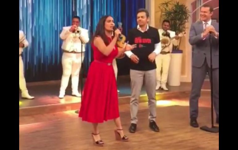 CIUDAD DE MÉXICO (24/ABR/2017).- La actriz Salma Hayek cantó en el programa “Un nuevo día”, al que acudió junto a Eugenio Derbez.Participaron en esa producción para promover su cinta “How to be a latin lover”, que se estrena en México a principios de mayo.En su cuenta de Instagram, Hayek compartió un clip de su visita al programa."Ahora me están haciendo cantar en todos los programas de televisión”, escribió.En el clip se puede ver cómo Salma interpretó parte del tema “Amanecí en tus brazos”, acompañada por un mariachi y alentada por Derbez.Son los dos actores mexicanos más taquilleros en Estados Unidos y están por estrenar "How to be a latin lover".