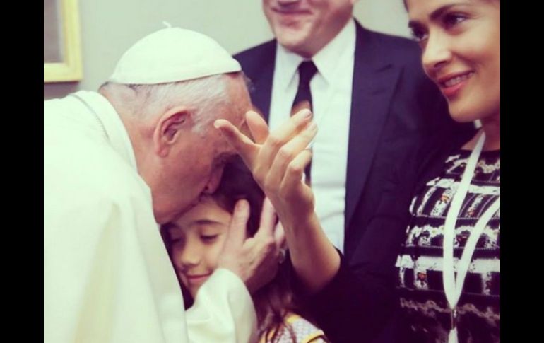 Entretenimiento | En la imagen, se ve al Pontífice besando en la frente a su hija, Valentina Paloma Salma Hayek comparte foto con el Papa Francisco En la imagen, se ve al Pontífice besando en la frente a Valentina Paloma, hija de la actriz Por: SUN 30 de mayo de 2016 - 11:51 hs 'No puedo amarlo más', escribe la famosa para acompañar la imagen. INSTAGRAM / salmahayek CIUDAD DE MÉXICO (30/MAY/2016).- La actriz mexicana Salma Hayek compartió en su cuenta de Instagram una fotografía en donde aparece junto al papa Francisco. El pasado domingo, Salma acudió a una ceremonia al Vaticano en donde fue reconocida junto a Richard Gere y George Clooney por su labor a favor de los jóvenes. Hayek dio cuenta de la visita a través de la imagen, en donde se ve al Papa besando en la frente a Valentina Paloma, hija de Salma. De fondo aparece Francois Henri Pinault, esposo de la actriz mexicana. “I can not love him more. No puedo amarlo más. #Pope #papa #love #family #familia #rome #roma #amor”, escribió Salma para acompañar la imagen de Instagram. Temas Farándula Actor- Actriz Salma Hayek Instagram Papa Francisco Lee También Belinda denuncia a Lupillo Rivera Dr. Simi llega al Vaticano; le entregan peluche al Papa León XIV Sociales: Domingo en los toros, concluye la primera parte de la Temporada Grande 2025 Los mejores MEMES que dejó la gran final de La Casa de los Famosos México Recibe las últimas noticias en tu e-mail Todo lo que necesitas saber para comenzar tu día Registrarse implica aceptar los Términos y Condiciones