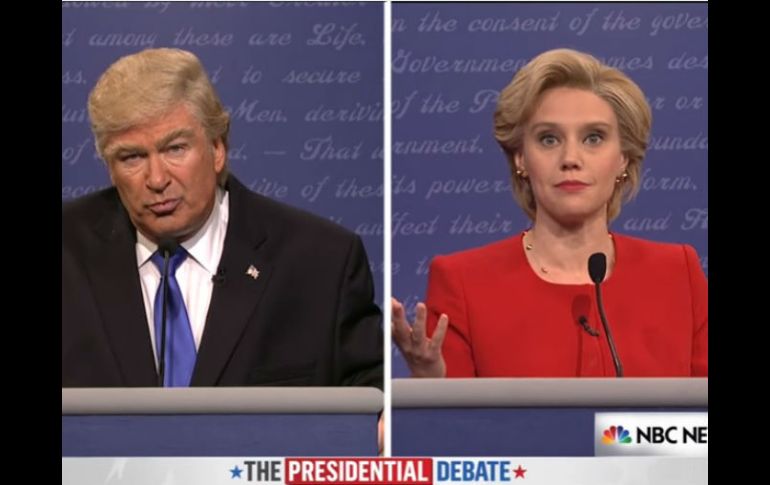 WASHINGTON, ESTADOS UNIDOS (02/OCT/2016).- El actor Alec Baldwin aspira con fuerza y expulsa palabras como "Yi-na", en la imitación que hizo del candidato republicano Donald Trump en el primer debate con su rival Hillary Clinton, en el famoso show "Saturday Night Live" de la televisión estadounidense.Baldwin se presentó en su nuevo papel como Donald Trump en el famoso programa de humor, que inició su temporada número 42.Con un cabello rubio ondulado y deportivo, un spray anaranjado y los labios fruncidos, Baldwin imitó la actuación que tuvo el lunes pasado el candidato republicano en el debate en la Universidad Hofstra."Nuestros trabajos se están yendo de este país. Están yendo a México, están yendo a Yi-na. Yo pararía esto. Si Hillary supiera como hacerlo ya lo hubiera hecho y fin de la historia. Gané el debate, estuve tranquilo como prometí, y se acabó, buenas noches Hofstra", dijo Baldwin en su papel de Trump, tratando de irse del escenario.Clinton -interpretada por Kate McKinnon, una integrante del programa- caminó en el escenario ayudada por un bastón, en referencia a su lucha contra la neumonía que padeció recientemente.La ex secretaria de Estado, quien se pasó varios días preparándose para el debate, tiene una reputación de ser una política rígida y con un guión preparado.Después de reclamar tener "el mejor juicio y el mejor temperamento", el Trump de Baldwin culpó a Clinton y al presidente Barack Obama de manipular su micrófono."Pienso que voy a ser presidenta", sonrió McKinnon.También se mofó de las repetidas interrupciones de Trump, que alegó que el cambio climático es un engaño chino y de que Clinton haya utilizado a la ex Miss Universo Alicia Machado como "un elemento fuerte, bonito y político".Machado dice que Trump, quien fue el dueño del concurso de belleza, se burló de ella diciéndole "Miss Piggy" (cochinita o cerdita), cuando ella subió de peso y que la llamó "Miss Mucama" solo porque era latina."Saturday Night Live" ha hecho parodias de los políticos desde 1970 con Gerald Ford, interpretado por Chevy Chase como un torpe después de que una vez se cayó en las escaleras de un avión.Una de las representaciones más recientes la que hizo Tina Fey, quien fue despiadada en 2008 interpretando a la ex candidata republicana a la vicepresidencia Sarah Palin como poco preparada.