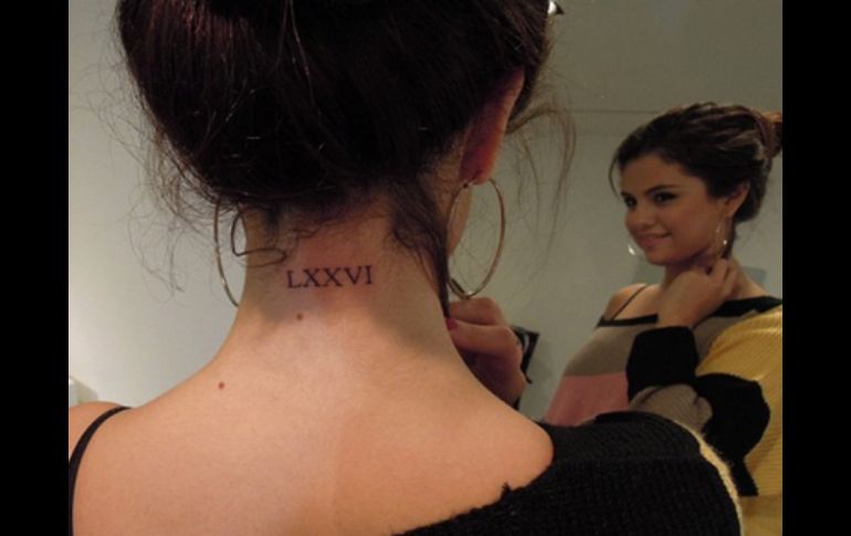 Entretenimiento | La artista eligió de nueva cuenta el famoso centro de tatuajes ''Bang bang'' Selena Gomez se tatúa el 76 en números romanos El diseño que se tatuó es un tributo a un miembro de su familia que significa mucho para ella Por: NTX 30 de septiembre de 2012 - 17:32 hs Hace siete meses se realizó su primer tatuaje. / LOS ÁNGELES, ESTADOS UNIDOS (30/SEP/2012).- Tras siete meses de haberse realizado su primer tatuaje, la cantante Selena Gomez se volvió a tatuar el número 76 en números romanos. De acuerdo con diversos medios locales, el diseño que se tatuó es un tributo a un miembro de su familia que significa mucho para ella. La artista eligió de nueva cuenta el famoso centro de tatuajes "Bang bang", negocio en el cual han pasado artistas como Justin Bieber y Vanessa Hudgens, entre otros. Selena llegó acompañada de una amiga y después de pensarlo varios minutos se decidió a dar el paso y tatuarse el simbólico número sobre la nuca. "Estaba muy nerviosa, así que cogió la mano de su amiga y no la soltó ni un segundo, algo que yo creo le ayudo muchísimo", sostuvo el tatuador. En febrero pasado, cuando la intérprete de "Love you like a love song" tuvo su primera experiencia en este arte, y entonces se tatuó una nota musical en la muñeca. Temas Farándula Cantantes Selena Gómez Lee También Alejandra Guzmán se somete a cirugía de emergencia; ¿cuál es su estado de salud? KIVA Inversión inmobiliaria integral presenta Atriva, esencia viva Presentan Plan México ante empresarios del Foro Mundial Napoleón une su voz con La Sonora Dinamita en una colaboración inédita Recibe las últimas noticias en tu e-mail Todo lo que necesitas saber para comenzar tu día Registrarse implica aceptar los Términos y Condiciones