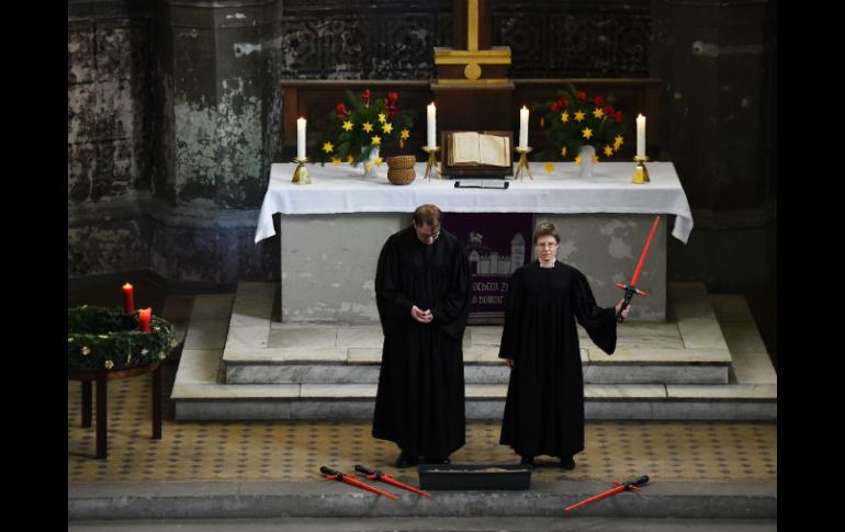 Entretenimiento | Medios de comunicación se dan cita junto a feligreses para presenciar la ceremonia 'Star Wars' llena la misa del domingo en una iglesia berlinesa Medios de comunicación se dan cita junto a feligreses para presenciar la ceremonia Por: EFE 20 de diciembre de 2015 - 07:29 hs Los clérigos aprovecharon para comprar pasajes bíblicos con escenas de las películas que integran la famosa saga. AP / M. Schreiberg BERLÍN, ALEMANIA (20/DIC/2015).- Pocos domingos se había visto tan llena la pequeña iglesia protestante de Sión, en el céntrico barrio berlinés de Mitte, que este día acogió una misa ''Star Wars'' con la que dos vicarios animaron a los feligreses a permanecer alejados del ''lado oscuro''. Numerosos medios de comunicación se dieron cita a las puertas del templo después de que sus responsables anunciaran que dedicarían el oficio de las 10:00 horas (09:00 GMT) a la saga de ''La guerra de las galaxias'', animados por el tirón de la llegada de su última entrega a las salas de cine. Varios feligreses acudieron disfrazados a la iglesia y no faltaron las espadas láser en una misa que comenzó con la mítica melodía de John Williams, interpretada esta vez, de forma excepcional, por el organista. La iniciativa partió de dos pastores en formación, Ulrike Garve, de 29 años, y Lucas Ludewig, de 39, que, según han explicado, cuanto más comentaban la película más paralelismos encontraban entre la saga y las tradiciones cristianas. ''Queremos mostrar estas analogías a los feligreses'', afirmó Garve, encargada de recibir a todos aquellos que quisieron sumarse a un oficio religioso que mantuvo su tradicional solemnidad, a pesar de las referencias cinéfilas y de integrar en el sermón escenas de la saga. Una de sus principales bazas era la escena en la que Luke Skywalker intenta ser atraído por el emperador hacia las tinieblas de la fuerza y lo rechaza con un: ''Jamás. No entraré en el lado oscuro''. La frase, en opinión de estos pastores, no está muy alejada de uno de los pasajes que recoge la Biblia en la Carta a los Romanos: ''No te dejes vencer por el mal, más bien derrota al mal con el bien''. La misa de este domingo coincidió con el cuarto domingo de Adviento, una jornada que, según reconocía una portavoz de la iglesia, no suele ser muy multitudinaria ante al proximidad de las festividades navideñas. La imagen esta mañana era diferente y hasta se colocaron sillas adicionales en el templo para que las alrededor de 500 personas que acudieron al oficio pudieran seguirlo cómodamente. Los que fueron disfrazados -ya lo sabían- participaron además en un sorteo de entradas para ''Star Wars: The Force Awakens'', la séptima entrega de la aventura galáctica creada por George Lucas que se estrenó esta semana en miles de salas de todo el mundo. Sus fans son ejército y en Alemania, por ejemplo, se encuentra entre ellos el secretario general de la Unión Cristianodemócrata (CDU), Peter Tauber, quien no dudó en comparar a su jefa, Angela Merkel, con la princesa Leia. ''No es sólo una princesa, también es un general'', señaló el político en una entrevista con el dominical ''Bild am Sonntag''. Temas Cine Iglesia Alemania Curiosidades y absurdos Star Wars Lee También Los dos estrenos imperdibles de Cinépolis este 16 de octubre Cinemex se luce este jueves 16 de octubre con dos estrenos Demián Bichir toma la llamada del terror en “Black Phone 2” “Vainilla”, esencia femenina que atrapa las miradas del FICM Recibe las últimas noticias en tu e-mail Todo lo que necesitas saber para comenzar tu día Registrarse implica aceptar los Términos y Condiciones