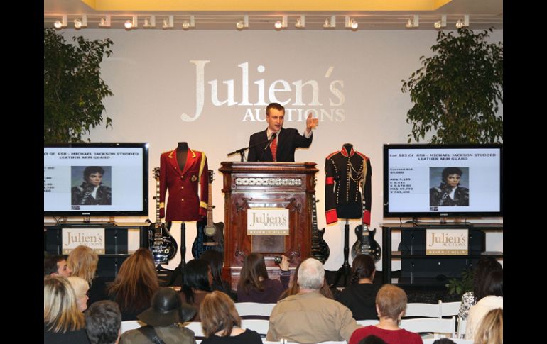 Entretenimiento | También se vendieron artículos de John Lennon y Marilyn Monroe Subastan guante de Michael Jackson en 330 mil dólares Un guante usado por el ''Rey del pop'' durante la gira ''Bad''' a finales de la década de 1980 se vendió por 330 mil dólares en una subasta Por: AP 5 de diciembre de 2010 - 16:37 hs Se vendieron varios objetos del vestuario escénico de Michael Jackson a través de la subasta ''Icons & Idols''. AP / BEVERLY HILLS, EU (05/DIC/2010).- Varios objetos del vestuario escénico de Michael Jackson, incluso uno de los famosos guantes del Rey del Pop, atrajeron intensas ofertas en una subasta de recuerdos de celebridades en Beverly Hills. La casa Julien's Auctions dice que un guante lucido por Jackson durante la gira ''Bad'' a finales de la década de 1980 se vendió por 330 mil dólares en la subasta ''Icons & Idols'' el sábado por la noche. Una chaqueta firmada por Jackson se vendió por 96 mil y un fedora que lució en el escenario por 72 mil . Una chaqueta estilo militar lucida por John Lennon para una sesión fotográfica con la revista Life en 1966 se vendió en 240 mil dólares. Otros objetos que consiguieron altos precios fueron una radiografía del cerebro de Albert Einstein (38 mil 750 dólares) y un par de frascos de medicamentos de Marilyn Monroe (18 mil 750). Julien's Auctions dice que la subasta de dos días generó más de tres millones de dólares. Temas Farándula Subastas Michael Jackson Lee También Belinda denuncia a Lupillo Rivera Los mejores MEMES que dejó la gran final de La Casa de los Famosos México Alexis Ayala reacciona a los señalamientos de violencia por parte de Paty Díaz Taylor Swift sorprende con referencia a George Michael en su álbum Recibe las últimas noticias en tu e-mail Todo lo que necesitas saber para comenzar tu día Registrarse implica aceptar los Términos y Condiciones
