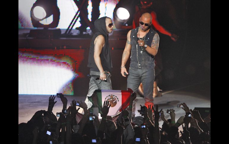 Entretenimiento | Baile y pirotecnia, el plato fuerte del recital Wisin & Yandel recibe Disco de Oro durante concierto en Ciudad de México Durante el recital que ofreció en la Plaza de Toros México, el dúo recibió el reconocimiento por las altas ventas de ''Los Vaqueros, el regreso'' Por: NTX 13 de febrero de 2011 - 12:14 hs El dúo tuvo como invitados a Tego Calderón, Gadiel y Tico ''El Inmigrante''. S.NÚÑEZ / CIUDAD DE MÉXICO (13/FEB/2011).- El dúo puertorriqueño Wisin & Yandel recibió Disco de Oro por las altas ventas de su más reciente álbum 'Los Vaqueros, el regreso', durante el exitoso recital que ofreció este sábado en la Plaza de Toros México, donde tuvo como invitados a Tego Calderón, Gadiel y Tico 'El Inmigrante'. La presentación con la cual el dueto inició su gira 'Los Vaqueros. El regreso, and friends' inició a las 20:45 horas, cuando en las pantallas del recinto apareció Wisin & Yandel, quienes subieron a un helicóptero para arribar a su cita con el público mexicano. Ovaciones y gritos ensordecedores de emoción por parte del público de inmediato se hicieron presentes cuando los cantantes apenas pronunciaban algunas breves palabras, entre ellas: 'Que bien se ve México desde acá arriba', situación que quedó registrada en los teléfonos celulares de los fans del dúo. Minutos después en las cuatro pantallas gigantes que adornaban el escenario 360 grados, (No giratorio), se presentó un vídeo que hacia alusión a 'Los Vaqueros', ambientado al puro estilo del viejo oeste y en el cual, entre otras cosas, se presentó la foto de T-Pain, 50 Cent, Tito 'El Bambino', Tego Calderón y Franco 'El Gorila', entre otros, todas ellas con la leyenda 'Se busca'. Acto seguido algunos juegos pirotécnicos marcaron la salida al escenario de Wisin & Yandel, quienes en compañía de cerca de una decena de bailarines abrieron el concierto con el tema 'Abusadora', que de inmediato exaltó aún más los ánimos del público, que coreó de principio a fin la canción, además de mostrar sus mejores pasos de baile. 'Los líderes, Wisin & Yandel, toda mi gente hermosa de México, para nosotros de verdad es un placer estar aquí, para nosotros es un sueño, así que muchas gracias por hacerlo realidad', expresaron los cantantes para continuar el buen ambiente con el tema 'Ahora es'. 'Besos mojados', 'Tu olor' y 'Sexy movimiento' dieron paso a que los cantantes manifestaran su deseo por convertir a la Plaza de Toros en 'Una gran discoteca', por lo que interpretaron 'Yo te quiero', 'Pam Pam', 'Mírala bien', 'Rakata' y 'El teléfono', temas en todo momento coreados y bailados por el público. Acto seguido y con gran ambiente Wisin & Yandel presentaron a uno de sus 'Vaqueros', el cantante Gadiel, quien se quedo solo en el escenario para interpretar un tema y posteriormente llamar al entarimado a otro de 'Los Vaqueros', Tico 'El Inmigrante', quienes entre otros temas, interpretaron 'Cositas macabras'. 'Buenas noches México de verdad que Dios los llene de bendiciones, mucha salud, gracias y sigan disfrutando', dijo Tico, mientras que Gadiel añadió: Antes de irnos yo quiero dejarles aquí a los líderes de este género, Wisin & Yandel, gracias, que Dios los bendiga'. Acto seguido subieron al escenario ejecutivos del sello discográfico de Wisin & Yandel para entregar Disco de Oro por las altas ventas de 'Los Vaqueros, el regreso'. 'Gracias México, los amamos mucho de verdad, y este disco es de ustedes, gracias Universal Music, Machete Music, a toda la gente que hace posible esto, los amamos y que Dios los Bendiga', dijeron Wisin & Yandel para continuar el recital con la canción 'Estoy enamorado'. A la que le siguieron 'Dime que te pasó', 'Lloro por ti' y 'Gracias a ti', mismas que dieron paso a que Wisin & Yandel presentaran al cantante Tego Calderón, con quien interpretaron el tema 'Cuando baila reggaetón', que exaltó los ánimos del público que bailaba a ritmo de la música con pasos sensuales y sugestivos. Luego de que Calderón bajara del escenario, Wisin & Yandel continuaron con 'Noche de sexo', para después desaparecer del entarimado para un cambio de ropa y regresar para seguir la velada con 'Me estas tentando', 'Te siento' y 'Quítame el dolor'. Esta próxima canción es una prueba más de que el movimiento sigue creciendo, y seguimos rompiendo las barreras del idioma, por primera vez W&Y se juntan con 50 Cent y T-Pain', dijo Wisin para interpretar 'No dejemos que se apague', aunque esta vez sin la participación de referidos cantantes y así bajar del escenario minutos antes de las 23:00 horas. Ante esto el público comenzó a pedir otro tema más, porque lo que Wisin & Yandel les pidieron que si lograban hacer una bulla de 20 segundos la petición sería cumplida; una vez logrado el objetivo los cantantes regresaron al escenario para interpretar 'Oh, oh, oh'. Acto seguido se repitió la acción pero con una bulla de 30 segundos, que dio paso a que el dúo puertorriqueño concluyera su actuación minutos después de las 23:00 horas, con el tema 'Zun zun rompiendo caderas'. Temas Música Discos de Oro Wisin & Yandel Lee También Tecate Pal Norte 2026: Estas son las fechas y sede t.A.T.u anuncia concierto en México: precio de boletos y cuándo salen a la venta Angélica Vale, viral por decir que "ningún latino puede pagar" para ir al Super Bowl Fiestas de Octubre 2025: cartelera por fecha en el Auditorio Benito Juárez Recibe las últimas noticias en tu e-mail Todo lo que necesitas saber para comenzar tu día Registrarse implica aceptar los Términos y Condiciones