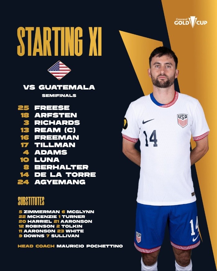 Deportes | Estados Unidos vs Guatemala: minuto a minuto de la semifinal de la Copa Oro Estados Unidos y Guatemala se enfrentan esta tarde en busca de obtener el boleto a la final de la Copa Oro 2025 Moisés Figueroa 2 de julio de 2025 - 18:50 hs Estados Unidos2 ‒ 1Guatemala Final del Partido Con dos goles de Diego Luna, la selección de Estados Unidos derrota a Guatemala y obtiene el pase a la final de la Copa Oro 2025. 90+1 ¡Cerca Guatemala! Morales saca un disparo de larga distancia y Freese manda el balón a tiro de esquina. 82' ¡Perdona Estados Unidos! Freeman remata de cabeza y sale el balón a las manos de Navarro. 79' ¡Goooooooooooooooooooooooooooooooool de Guatemala! Escobar define con parte interna y descuenta para Guatemala. 64' ¡Por poco Estados Unidos! Agyenmang remata de cabeza, pero Navarro desvía a tiro de esquina. Inicia el segundo tiempo Se reanudan las acciones en el Estadio Energizer Park. Termina el primer tiempo Estados Unidos se va al descanso con la ventaja de 2-0 frente a la selección de Guatemala. 45' Se agregan 3 minutos al primer tiempo 42' ¡Cerca otra vez Estados Unidos! El portero Navarro desvía el balón tras un cobre de tiro libre por parte de Estados Unidos. 33' ¡Se salva Estados Unidos! Rubín le gana la espalda a los defensores y saca un disparo dentro del área que desvía el portero estadounidense. 25' ¡Por poco Guatemala! Santis remata de cabeza y el balón pasa por un costado del poste. 16' Responde Guatemala Rosales se anima de larga distancia, pero el balón sale desviado del arco estadounidense. 14' ¡Goooooooooooooooooooooooool de Estados Unidos! Diego Luna hace una bicicleta quitando a sus rivales de encima y saca un disparo raso pegado al poste imposible para el portero. 10' ¡A nada Estados Unidos! Tillman se anima con un disparo de fuera del área y el balón pasa muy cerca del arco. 3' ¡Gooooooooooooooooooooooooooooool de Estados Unidos! Diego Luna aprovecha el rebote del arquero Navarro que se equivoca y ya lo gana el equipo de las barras y las estrellas. Inicia el partido El árbitro hace sonar su silbato y comienza a rodar el balón en el Estadio Energizer Park. Alineación de Guatemala Este es el once ue manda Luis Fernando Tena: Alineación de Estados Unidos Así sale al terreno de juego la escuadra estadounidense dirigida por Phochettino: Temas Selección de Estados Unidos Selección de Guatemala Copa Oro 2025 Lee También Centro de detención “Alcatraz de los Caimanes” en Florida recibirá al primer grupo de inmigrantes México vs Honduras • Momentos destacados • Semifinal • Copa Oro EU detiene envío de armas a Ucrania tras revisar su gasto militar Sergio Ramos comparte mensaje tras la eliminación de Monterrey
