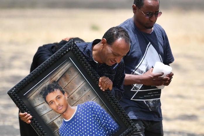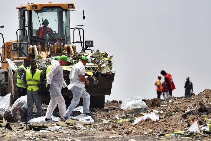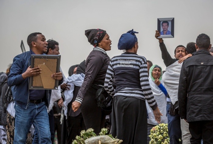 "¡Ibas a casarte pronto! ¿Por qué tenías que morirte?" En una zona rural tranquila de Etiopía, no lejos de la capital Adís Abeba, se oyen los llantos de las familias de las víctimas del accidente aéreo del domingo, que causó 157 muertos.Desperdigados en el campo cercano al pueblo de Tulu Fara donde se estrelló el avión, algunos se arrodillan en medio de los restos del aparato que todavía no fueron recuperados por los investigadores.Algunos necesitan ayuda para mantenerse de pie, otros gritan los nombres de sus allegados que se encontraban a bordo del vuelo 302 de Ethiopian Airlines que unía Adís Abeba y Nairobi. Sólo el ruido de las excavadoras desenterrando los restos perturba su lamento.La policía intenta por su parte dispersar a los grupos de curiosos.Desde el miércoles, las familias de los difuntos se suceden en el lugar del accidente, que llegan a la zona en autobuses fletados por Ethiopian Airlines o por sus propios medios.Algunos de ellos rezan, otros toman tierra entre sus puños, traen ofrendas de frutas, encienden velas, llevan fotos de sus fallecidos o entonan cantos. Hubo víctimas de 35 nacionalidades diferentes, y cada uno las llora a su manera."Nadie se pensaba que esto pudiera ocurrirle. Ella amaba su vida", suspira el etíope Micky Kassa, cuya prima Mygenet Worku viajaba a Nairobi para participar en la reunión anual del Programa de Naciones Unidas para el Medio Ambiente (PNUE)."Tenía una madre mayor, que la crió sola. Es una terrible noticia", dijo.Para los etíopes, el accidente es una tragedia nacional, e incluso gente que no perdió a ningún allegado fue hasta el lugar del accidente.Ethiopian Airlines, la compañía aérea más importante de África, es un escaparate de Etiopía para el extranjero. El país perdió a nueve pasajeros y ocho tripulantes."Todos los etíopes deberían estar aquí", dice Genanaw Dibekulu, directivo de un banco que gastó un día de sus vacaciones para ir hasta la zona del siniestro. "Es trágico. Si uno de los miembros de mi familia hubiera muerto, me habría vuelto loco".Algo más lejos, responsables de la ONU se reúnen en silencio alrededor de una ofrenda de flores blancas. Rinden homenaje a los 22 funcionarios de este organismo que viajaban en el aparato, ya que en Adís Abeba y Nairobi se encuentran importantes oficinas de Naciones Unidas.En el suelo se pueden ver varias tarjetas de visita, junto a fragmentos de asientos.Investigadores estadounidenses y británicos, el equipo técnico enviado por Boeing, Interpol y el gobierno etíope estaban en el lugar.Pero para los padres de un israelí fallecido en el accidente, con esto no basta. Quieren acceder a una zona prohibida donde están trabajando las excavadoras."No nos autorizan a acceder al lugar", se lamenta Sahan Biton, cuyo tío Shimon Reem, un consultor en seguridad para un centro comercial de Nairobi, figura entre las víctimas.Según la tradición judía, Shimon no puede ser enterrado hasta que se haya encontrado un resto de su cuerpo. Su sobrino critica a las autoridades etíopes por no haberle entregado ya los restos que ya hallaron, ni autorizar a un equipo especialista israelí a acceder a la zona en cuestión."Hasta que no tengamos un trozo del cuerpo, no podremos enterrar a nuestro tío", insiste Sahan. Afligido, canta el himno nacional y entona varias oraciones en su honor junto a cinco compatriotas, que muestran una bandera israelí.Según testigos, el morro del avión se estrelló directamente contra el suelo. El jueves quedaban pocos restos visibles del aparato y fácilmente identificables, excepto una rueda y trozos de metal que podrían venir de un motor."Ayer, encontré una pierna", asegura Zhang Jun, un obrero chino que trabajaba con su excavadora en la extensión del aeropuerto de Adis Abeba, antes de que lo llamaran para participar en las tareas de rescate.Según este hombre, lo que queda del aparato podría estar enterrado hasta 20 metros bajo tierra. La tarjeta de crédito y el pasaporte que encontró estaban tan dañados que no pudo determinar a quién pertenecían: "Todos son trozos, no queda nada grande".JM