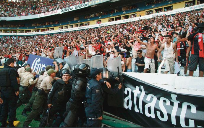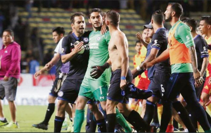 A pesar de que en los últimos años se han suscitado diferentes altercados entre aficionados dentro y fuera de los estadios del futbol mexicano, la Liga MX y los clubes no han tomado las medidas pertinentes para erradicar el problema de fondo y poner de una vez por todas un alto a la violencia en los inmuebles del balompié nacional.Como muestra está la bronca registrada en las tribunas del Estadio Alfonso Lastras el pasado domingo, en el partido que sostenían las escuadras de Atlético de San Luis y Querétaro, donde el silbante Óscar Macías determinó suspender el juego al minuto 84 tras la trifulca entre aficionados de ambos equipos.Después de lo ocurrido, la Comisión Disciplinaria sancionó con una multa de 500 mil pesos al San Luis. Además, le impuso un veto de dos partidos a su estadio y determinó que en lo que resta del torneo no habrá acceso a las barras de dicho equipo.Sin embargo, con lo ocurrido en el Alfonso Lastras no es la primera vez que el futbol mexicano queda manchado por la violencia. Incluso, en diversas ocasiones los mismos futbolistas de la Liga MX han sido los protagonistas de altercados dentro del terreno de juego.