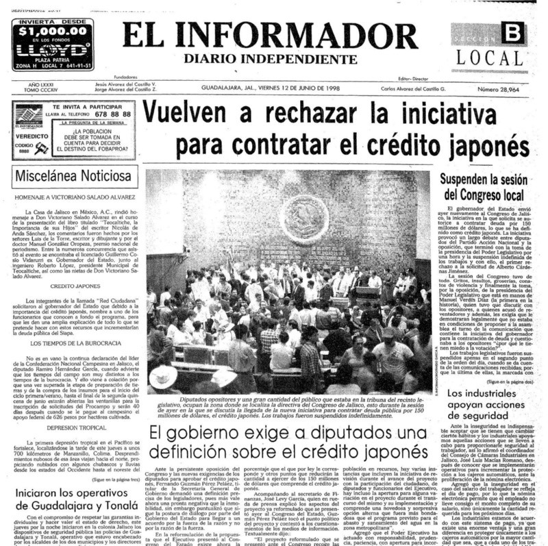 En intentos por garantizar el abasto de agua para el Área Metropolitana de Guadalajara (AMG) en las últimas décadas han fracasado proyectos que no llegaron a concluir y la metrópoli depende del líquido extraído del lago de Chapala.Desde 1956, la AMG tiene como fuente principal de abasto al lago. El agua fue traída inicialmente a la ciudad a través del canal de Atequiza. Este sistema de conducción era a cielo abierto con una longitud de 92.5 kilómetros, iniciando desde Ocotlán.En 1984 se inició la construcción del Acueducto Chapala-Guadalajara, el cual entró en operación 6 años después. El acueducto tiene capacidad de conducción en promedio de 7.5 metros cúbicos por segundo, con una longitud de 42.5 kilómetros. Las obras impulsadas para diversificar las fuentes de agua para los tapatíos quedaron inconclusas por razones como conflictos sociales, políticos, falta de presupuesto o estudios técnicos.29 de septiembre de 1989 Al final de la década de los ochenta, el ex gobernador Guillermo Cosío Vidaurri impulsó el sistema La Zurda-Calderón-El Salto como fuente de abastecimiento. El proyecto de la presa La Zurda se había planteado desde 1941 sobre la cuenca del Río Verde, se utilizaría para generar energía eléctrica y también se consideró la posibilidad de usar el agua para Guadalajara. En el sistema retomado por Cosío Vidaurri, la presa principal se pretendía construir 45 kilómetros aguas arriba del poblado de Temacapulín. Al final de la administración (1989 -1992) se concretó la construcción de la presa Calderón o Elías González Chávez, en Tepatitlán; para 1993 se terminó la presa El Salto, en el municipio de Valle de Guadalupe, que era parte del sistema; sin embargo, no se logró edificar el embalse principal.Tras las explosiones del 22 de abril de 1992 en el sector Reforma de Guadalajara, el ex gobernador Cosío Vidaurri solicitó licencia al cargo. Su sucesor Carlos Rivera Aceves no dio continuidad a los proyectos y las posteriores administraciones encabezadas por panistas los olvidaron.12 de junio de 1998 Durante el sexenio del panista, Alberto Cárdenas Jiménez, se pretendió alentar los proyectos hídricos para la AMG basado en un esquema financiero que incluía contratar un crédito con el consorcio japonés Overseas Economic and Cooperation Fund. En 1998 se planteó que el Sistema Intermunicipal de Agua Potable y Alcantarillado (SIAPA), a través del Banco Nacional de Obras y Servicios Públicos (Banobras), solicitara un crédito por un monto de 150 millones de dólares al consorcio empresarial japonés.El plan no incluía edificar nuevas presas o retomar el sistema La Zurda, pues para el abastecimiento se impulsarían obras de rehabilitación a la infraestructura existente, extender sistemas de distribución y la construcción de un acueducto para llevar agua de la presa El Salto a la presa Calderón e incrementar el líquido enviado a la AMG. En materia de saneamiento proyectaba la construcción de las plantas de tratamiento de El Ahogado, Río Blanco y otra en Atemajac. La aprobación del empréstito fue rechazada en el Congreso de Jalisco y frustró los planes.1 de junio de 2005 31 de octubre de 2009En la administración de Francisco Ramírez Acuña (2001-2006), volvió la promoción de nuevas presas para abastecer de agua al AMG.La presa San Nicolás fue considerada por los gobiernos y empresarios como alternativa para el desarrollo de las ciudades de León y Guadalajara. Se planteó que las aguas del Río Verde fueran trasvasadas vía un acueducto de 100 kilómetros hacia León, una vez utilizadas estas mismas aguas serían descargadas en el río Turbio, afluente del río Lerma para que arribaran al Lago de Chapala ya tratadas. Tendría una cortina de 65 metros de altura, se emplazaría entre Jalostotitlán y Teocaltiche, inundaría 52 poblados, provocaría el desplazamiento de unas 10 mil personas y despertó la oposición social. En mayo de 2005, el gobernador Ramírez Acuña confirmó la cancelación del proyecto y se propuso como alternativa la presa El Zapotillo.En plena barranca de Huentitán, aguas abajo de la confluencia de los Ríos Santiago y Verde, se pretendía edificar una cortina 140 metros de altura y habilitar un sistema de bombeo para subir el agua 580 metros. Arcediano daría un aprovechamiento total de 10.4 metros cúbicos por segundo. El proyecto también enfrentó oposición de ambientalistas y pobladores que serían desalojados. En octubre de 2009 se anunció la cancelación del proyecto original con el argumento de que no era técnicamente justificable.8 de agosto de 2013 30 de junio de 2017 En diciembre de 2005 se firmó un convenio entre el Gobierno Federal y los Estados de Jalisco y Guanajuato para construir la presa El Zapotillo con una cortina de 80 metros y una superficie de embalse de 2,051 hectáreas, lo que implicaba inundar los poblados de Acasico y Palmarejo en el municipio de Yahualica. Además, se tendrían que construir diques para evitar la inundación de Temacapulín en Cañadas de Obregón. Los habitantes de las tres poblaciones comenzaron una lucha jurídica que mantienen desde entonces con la que consiguieron detener la construcción de la cortina. El ex gobernador panista, Emilio González Márquez, continuó en su administración (2007-2013) el plan de usar las aguas del Río Verde para dar agua a León y la AMG. Impulsó los embalses de El Zapotillo y El Purgatorio, sin conseguir terminar su edificación y los heredó a su sucesor el priista Jorge Aristóteles Sandoval, quien en seis años tampoco tuvo definiciones en el tema. Sandoval Díaz pagó 4.6 millones de dólares a la Oficina de las Naciones Unidas de Servicios para Proyectos (UNOPS) en un estudio que dio el aval técnico para la obra y planteó modificaciones al proyecto para que la altura de la cortina quedara en 105 metros e inundar los poblados de Temacapulín Acasico y Palmarejo. 15 de agosto de 2021 En agosto de 2013, la S