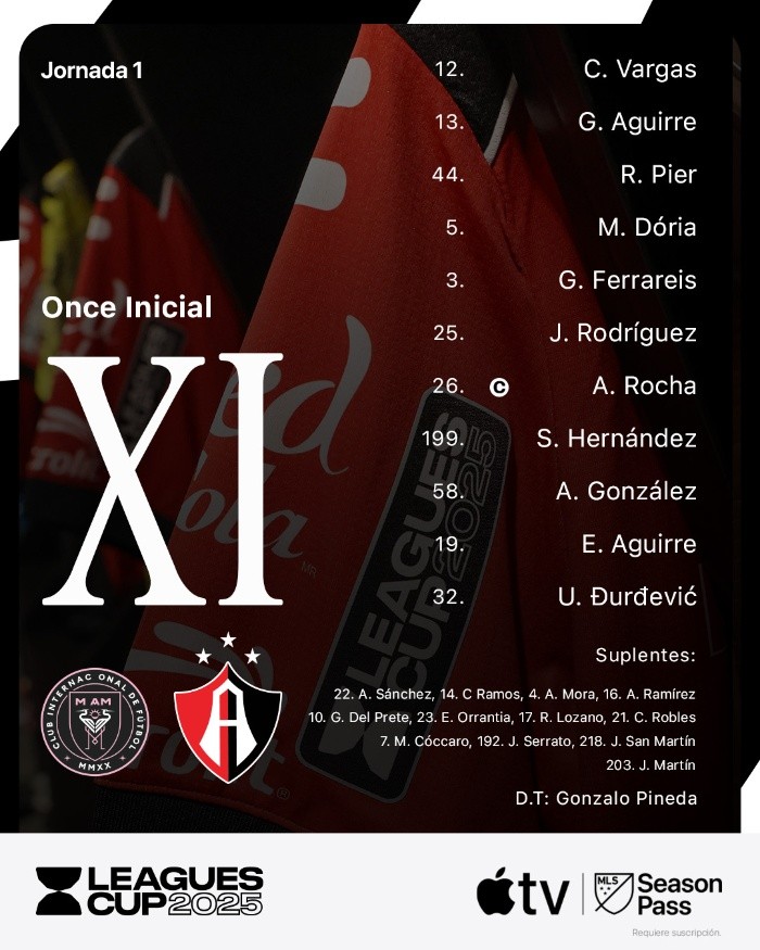 Deportes | Inter Miami vs Atlas • Momentos Destacados • Jornada 1 • Leagues Cup Inter Miami enfrenta a Atlas en un esperado duelo de Leagues Cup, con la posible participación de Messi y el debut de Rodrigo De Paul Sergio Alejandro Velázquez 30 de julio de 2025 - 16:15 hs INTER MIAMI2 ‒ 1ATLAS Fin del partido 90+6' ¡Goooool del Inter Miami! ¡Gol de Inter Miami! Marcelo Weigandt pone el 2-1 en el cierre del partido, aprovechando una gran asistencia de Lionel Messi, quien una vez más fue clave con una jugada brillante. El equipo local recupera la ventaja en los últimos instantes del encuentro. TEAM WORK! ⚽️ Se juntaron los que saben, segunda asistencia de Messi y Weigandt no perdonó!#LeaguesCup2025 pic.twitter.com/5D8Ts1wDII — Leagues Cup (@LeaguesCup) July 31, 2025 90' Agregan 5 minutos al segundo tiempo 82' Modificaciones en Atlas Salen: Sergio Hernández y Alfonso González. Entran: Carlos Orrantia y Jesús Serrato. 80' ¡Atlas empata el partido! Rivaldo Lozano empató el marcador con un zurdazo a quemarropa, enviando el balón al fondo de la red por el lado derecho de la portería. ¡Despiertan los Zorros! ⚽️ José Lozano didn't waste the opportunity and scored the equalizer!#LeaguesCup2025 pic.twitter.com/SwY133v4jq — Leagues Cup (@LeaguesCup) July 31, 2025 77' Cambio en Inter Miami Sale Tadeo Allende, entrea Benjamín Cremaschi. 68' Modificaciones en ambos equipos En Atlas sale Matheus Dória y entra Matías Cóccaro. En Inter Miami sale Telasco Segovia para dejar entrar a Federico Redondo. 58' ¡Inter Miami abre el marcador! Telasco Segovia rompe el cero y pone en ventaja al equipo local con un remate certero, luego de una gran asistencia de Lionel Messi. El argentino filtró un pase preciso que dejó a Segovia en posición inmejorable para marcar el 1-0. ¡Pegan primero! ⚽️ Sergio Busquets set up Messi y Leo le dejó un bombón a Segovia @InterMiamiCF 1-0 @AtlasFC #LeaguesCup2025 pic.twitter.com/LOMggMV0Mx — Leagues Cup (@LeaguesCup) July 31, 2025 Comienza el segundo tiempo Atlas regresa con un cambio; sale Jorge Rodríguez para dejar entrar a Rivaldo Lozano. Se termina la primera mitad 45' Agregan 3 minutos al primer tiempo 34' Disminuye el ritmo del encuentro Se acumulan minutos de una acción de juego trabada, con ambos equipos buscando construir sus jugadas y hacerse del control del balón. 25' El "Mudo" Aguirre se queda a nada Poncho González envía un centro al área que Eduardo Aguirre conecta con un remate de cabeza cruzado, sin embargo, el arquero Rocco Ríos reacciona a tiempo y evita la anotación. 22' Camilo salva al Atlas Tadeo Allende remata con dirección al arco, pero no logra vencer a Camilo Vargas, quien rechaza el disparo y mantiene el marcador sin modificaciones. ¡DON CAMILO VARGAS! Tadeo Allende had the first one and the @AtlasFC goalkeeper said NO!#LeaguesCup2025 pic.twitter.com/LltqlznN6x — Leagues Cup (@LeaguesCup) July 31, 2025 14' El inter insiste ante la portería rojinegra Miami comienza a tomar el control de las acciones ofensivas e insiste con fuerza sobre el arco rojinegro. 8' Miami también toma su turno para atacar Tadeo Allende gana el balón por aire durante un tiro de esquina, pero su remate de cabeza se va desviado. 4' Atlas comienza a generar jugadas Gaddi Aguirre es el primero en llegar al balón con un remate de cabeza dentro del área del Inter, sin embargo, el balón se va desviado y termina fuera del terreno de juego. Comienza el encuentro Previa del partido Este miércoles continúa la primera jornada de la Leagues Cup, y uno de los encuentros más esperados será el que disputen Inter Miami y Atlas, con la expectativa centrada en una nueva actuación de Lionel Messi frente a un equipo de la Liga MX. El partido se jugará en el Chase Stadium, casa del Inter Miami, donde los rojinegros buscarán imponer condiciones y derrotar al equipo liderado por el campeón mundial en Qatar 2022. Gonzalo Pineda, director técnico de Atlas, habló sobre la importancia de que sus jugadores mantengan la calma ante la presencia de Messi. Además, se espera que esta noche Rodrigo De Paul, exjugador del Atlético de Madrid, pueda hacer su debut con el equipo de las Garzas. ¿Cuándo y dónde ver el Inter Miami vs Atlas? Fecha: Miércoles 30 de julio Hora: 17:30 Transmisión: Apple TV y MLS Season Pass SV Alineación de Atlas Alineación de Miami This is how we line up tonight pic.twitter.com/Rpvjdz4ogE — Inter Miami CF (@InterMiamiCF) July 30, 2025 Temas Inter Miami Atlas Lionel Messi Futbol Internacional Leagues Cup Lee También Atlas debuta en la Leagues Cup con derrota frente al Inter Miami de Messi Chivas, el único grande de México sin triunfos ni clasificaciones en Leagues Cup El dólar cierra al alza frente al peso, impulsado por datos económicos sólidos Pumas: Fechas, horarios y dónde ver sus partidos en la Leagues Cup