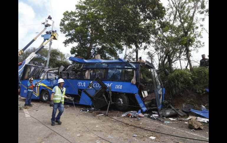 MANILA, FILIPINAS (20/FEB/2017).- Al menos 14 personas murieron y unas 40 resultaron heridas hoy, cuando un autobús que transportaba a estudiantes universitarios colisionó con un poste en las afueras de Manila.El vehículo impactó de lleno con el poste eléctrico después de que el conductor perdiera el control de los frenos y el vehículo se saliera de la carretera en un tramo cuesta abajo en Tanay, unos 40 kilómetros al este de Manila, indicaron testigos al diario local Inquirer.Tras la colisión, el poste cayó sobre el techo del autobús, que transportaba a más de 50 personas y que quedó totalmente destrozado, según los medios locales.Las víctimas mortales son el conductor y 13 estudiantes de la universidad BestLink de la Ciudad de Quezon que participaban en una excursión escolar, indicó Inquirer.Los heridos fueron trasladados a hospitales cercanos, mientras las autoridades han abierto una investigación para aclarar las causas del suceso.