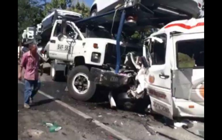 BOGOTÁ, COLOMBIA (04/JUL/2017).- Once personas murieron y otras cinco resultaron heridas este martes en el noreste de Colombia en un choque entre un bus de transporte público y un tracto camión, informaron fuentes oficiales."Es una catástrofe, una tragedia", dijo el gobernador del departamento de Santander, Didier Tavera, en un video publicado en su cuenta en Twitter.El accidente ocurrió la mañana de este martes en la vía La Lizama - San Alberto, que conduce a Cimitarra y a la capital departamental Bucaramanga, cuando un camión que cargaba automóviles chocó contra un bus de servicio público que transportaba a 16 personas, indicó por su parte el director de Tránsito y Transporte de la Policía, general Ramiro Castrillón.El alto oficial explicó que en el siniestro fallecieron el conductor del bus y seis mujeres. Cinco personas resultaron heridas, una de ellas "en grave estado de salud", agregó.Castrillón aseguró que las autoridades estudian tres hipótesis de la tragedia: exceso de velocidad, invasión de carril o un "microsueño" de uno de los conductores.El gobernador de Santander decretó duelo en el departamento.