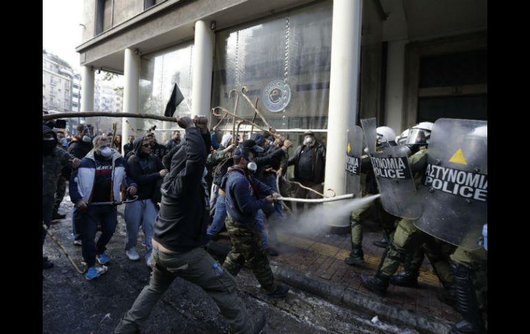 ATENAS, GRECIA (08/MAR/2017).- Centenares de agricultores griegos se enfrentaron hoy en Atenas con la policía antidisturbios ante el ministerio de Agricultura, en una protesta contra las subidas de impuestos y de sus cotizaciones de la seguridad social.En torno a un millar de campesinos, según la Policía, llegaron esta madrugada desde la isla de Creta al puerto de Pireo, desde donde se trasladaron hasta el ministerio de Agricultura.Los disturbios empezaron, según los medios locales, cuando el secretario general del ministerio rechazó reunirse con unos 40 representantes de los agricultores y les pidió formar una delegación menos numerosa.Los agricultores prendieron fuego a contenedores de basura y lanzaron piedras contra el edificio y contra las fuerzas antidisturbios, que recurrieron al uso de gases lacrimógenos y de granadas aturdidoras para disolver la protesta.Según la citada fuente de la Policía, dos agricultores fueron detenidos.Los agricultores piden establecer el mínimo de ingresos exento de impuestos en 12 mil euros anuales (actualmente está en ocho mil 636 euros), no aplicar la subida del precio del gasóleo y el aumento de las cotizaciones a la seguridad social a su sector, y reducir la edad de jubilación a 65 años para los hombres y a 55 años para las mujeres.Las medidas contra las que protestan los agricultores forman parte del tercer paquete de rescate de Grecia, firmado en agosto de 2015 por el Gobierno.El año pasado, los agricultores mantuvieron centenares de bloqueos en las principales carreteras de Grecia entre enero y marzo contra estas medidas y cerraron durante semanas el paso fronterizo hacia Bulgaria, lo que causó importantes estragos económicos a los productores que dependen de las exportaciones.Este año, la falta de unión entre los colectivos de campesinos restó fuerza a una protesta similar en las carreteras.
