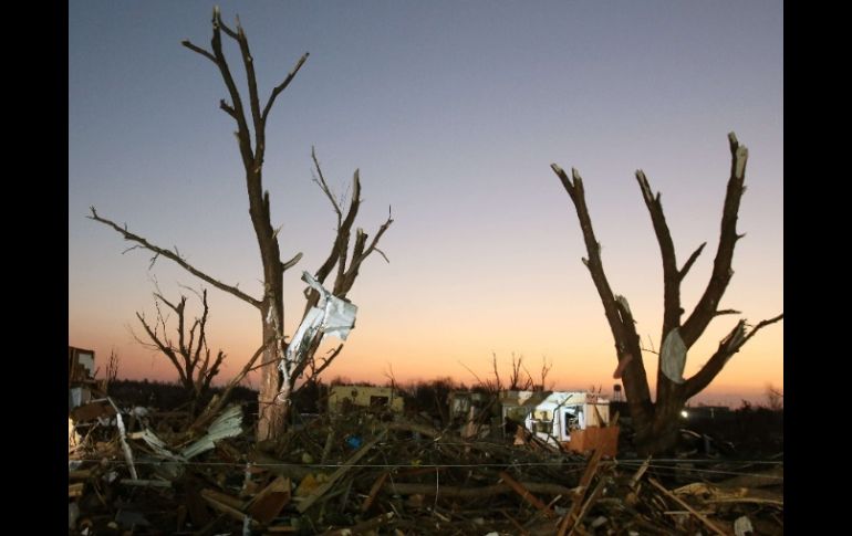Internacional | Numerosos tornados y tormentas de gran potencia han azotado el centro del país Al menos seis muertos por potentes tornados en EU Numerosos tornados y tormentas de gran potencia han azotado el centro del país Por: EFE 18 de noviembre de 2013 - 07:41 hs Los devastadores efectos de los tornados se han dejado sentir en los estados de Illinois (foto), Indiana, Michigan y Misuri. AFP / WASHINGTON, ESTADOS UNIDOS (17/NOV/2013).- Al menos seis personas han muerto y 37 han resultado heridas tras el paso de numerosos tornados y tormentas de gran potencia por el centro de Estados Unidos, donde miles de personas se han quedado sin hogar, informan hoy medios locales. Las seis víctimas mortales se registraron en las últimas horas en la región central del Medio Oeste, donde se contabilizaron 77 tornados y tormentas, algunos con vientos superiores a los 320 kilómetros por hora, indicó la cadena ABC en su página web. Algunas localidades de la zona han quedado arrasadas por la potencia del viento, como en el caso de la ciudad de Washington, en el estado de Illinois y donde murió una persona. Además, una pareja de edad avanzada murió en Nashville y otras dos fallecieron en el área de Brookport y una sexta en la zona de Unionville, todas en Illinois, según el director de la Agencia de Gestión de Emergencias de ese estado, Jonathon Monken. Las autoridades no descartan que la cifra de heridos aumente significativamente a medida que se tenga información más precisa de los efectos de los tornados y las tormentas. Cientos de miles de personas se han visto afectadas y los daños económicos ascenderán a millones de dólares, según la cadena CNN. Los medios locales recogen el testimonio de varios testigos que relataron cómo decenas de viviendas se quedaron sin tejado y numerosos automóviles volaron por los aires debido a la potencia del viento. Asimismo varias carreteras se encuentran cortadas y más de 300 mil personas se quedaron sin electricidad, mientras las autoridades han prohibido viajar a los ciudadanos de las zonas afectadas. En Chicago, las tormentas, acompañadas de lluvia y granizo, obligaron a suspender durante dos horas el partido entre los Chicago Bears y los Baltimore Ravens, de la Liga Nacional de Fútbol Americano. Además de en Illinois, los devastadores efectos de los tornados se han dejado sentir en los estados de Misuri, Indiana y Michigan. Temas Norte América Tornados EU Estados Unidos Desastres Naturales Lee También "Sonia" toma fuerza en el Pacífico; aparecería en días "Trump puede ser presidente de la Paz o de la Guerra, pero no ambos": ministro iraní Zonas de Jalisco que esperan lluvia en las próximas horas México lucha por acceder a más de 300 pueblos incomunicados tras las lluvias Recibe las últimas noticias en tu e-mail Todo lo que necesitas saber para comenzar tu día Registrarse implica aceptar los Términos y Condiciones