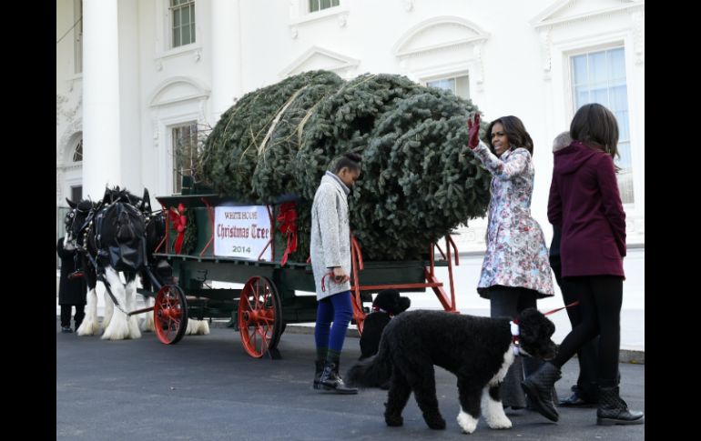 Internacional | La primera dama, sus hijas y sus perros lo inspeccionaron y jugaron Árbol de Navidad llega a la Casa Blanca La primera dama, sus hijas y sus perros lo inspeccionaron y jugaron Por: AP 28 de noviembre de 2014 - 10:41 hs El árbol será montado y engalanado en el Salón Azul. AP / S. Walsh WASHINGTON, ESTADOS UNIDOS (28/NOV/2014).- El árbol de Navidad oficial llegó este viernes a la Casa Blanca. Un carro tirado por caballos lo llevó hasta el Portal Norte por la mañana. La primera dama Michelle Obama, sus hijas Malia y Sasha junto con los perros Bo y Sunny inspeccionaron el árbol, circularon alrededor del carro, lo olieron, conferenciaron entre ellas hasta que la primera dama dijo "aceptamos el árbol". El abeto del Colorado de seis metros (20 pies) de altura proviene de un establecimiento de Pennsylvania. El árbol será montado y engalanado en el Salón Azul, donde será la principal atracción durante la temporada de las fiestas. Temas Norte América Estados Unidos Casa Blanca Michelle Obama Navidad 2014 Recibe las últimas noticias en tu e-mail Todo lo que necesitas saber para comenzar tu día Registrarse implica aceptar los Términos y Condiciones