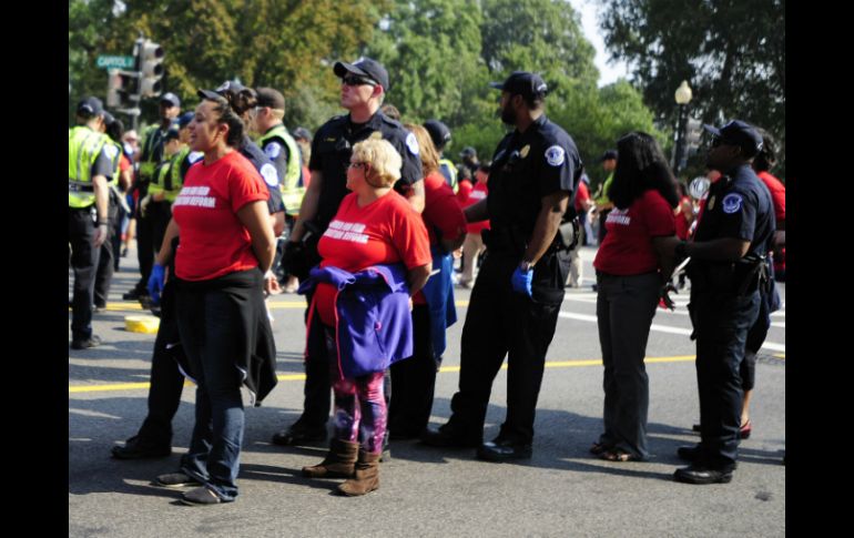 Internacional | La mayoría de las mujeres que se manifestaban en el Capitolio eran mexicanas Arrestan a 105 indocumentadas que exigían reforma migratoria en EU La mayoría de las mujeres que se manifestaban en el Capitolio eran mexicanas Por: NTX 12 de septiembre de 2013 - 15:35 hs Se trata del primer acto de desobediencia civil pacífico para demandar una reforma migratoria. NTX / WASHINGTON, ESTADOS UNIDOS (12/SEP/2013).- Un total de 105 mujeres, varias de ellas inmigrantes indocumentadas mexicanas, fueron arrestadas hoy frente al Capitolio, en el primer acto de desobediencia civil pacífico de su tipo para demandar al Congreso una reforma migratoria. Al grito de "Sí se puede", el grupo de mujeres creó un círculo de camisetas rojas en la acera frontal al Capitolio, donde desplegaron una manta con la exigencia de una urgente reforma migratoria para 11 millones de inmigrantes indocumentados. ¿Qué queremos?, corearon las mujeres mientras era sujetadas con esposas plásticas por parte de la policía del Capitolio. "Queremos una reforma migratoria", respondía el grupo, que fue apoyado por otro centenar de manifestantes apostados en las aceras. Las mujeres bloquearon la circulación vehicular de las calles Independencia y Nueva Jersey, lo que constituye una violación sujeta a arresto. Decenas de agentes y patrullas habían sido desplegadas en preparación de las detenciones. Sin resistirse al arresto, las mujeres fueron escoltadas a camiones de la policía, donde se les recogieron las pertenencias antes de ser transportadas a un centro de detención del Distrito de Columbia. María, un inmigrante mexicana que viajó desde California para participar en el acto de desobediencia, dijo no tener miedo de ser deportada. "He vivido 20 años en la sombre. No tengo temor", dijo ataviada con la leyenda "Mujeres por la Reforma migratoria Justa". Antes de la detención, las mujeres llevaron a cabo una movilización con cánticos y consignas frente al Congreso donde pidieron al liderazgo republicano, acelerar el trámite de una reforma migratoria y evitar que sea desplazada por temas como Siria. Activistas recordaron que tres cuartas partes de los inmigrantes indocumentados en Estados Unidos son mujeres y niños. Se trató del mayor el acto de desobediencia civil de su tipo para demandar una reforma migratoria y el primero en ser integrado exclusivamente por mujeres. Medea Benjamín, del grupo CodePink que ha realizado movilizaciones contra Siria en el Congreso, dijo que los legisladores republicanos deben estar listos para movilizaciones adicionales por la reforma migratoria. Clarissa Martínez, del Consejo Nacional de la Raza (NCLR), expresó su apoyo a la forma de lucha. "Es una forma de participación democrática que obviamente sirve para llevarles el mensaje a los miembros del Congreso que parece están dormidos en sus laureles", dijo. El legislador demócrata de California, Xavier Becerra, lo comparó con las movilizaciones del defensor de los derechos civiles para los afroamericanos, Martin Luther King, y del líder campesino así como activista, Cesar Chávez. "Mientras que sea algo pacífico, están expresándose como los ha hecho otros americanos en el pasado para un asunto bien importante en la vida de nuestras familias", señaló Becerra. Temas Norte América Ley antiinmigrantes Estados Unidos Inmigrantes Lee También México y Estados Unidos refuerzan cooperación en seguridad fronteriza ¿Tormenta "Sonia" afectará a Jalisco en los próximos días? Ebrard buscará evitar imposición de aranceles en su visita a EU SAT: ¿Cómo saber si hay servicio tras el paro de trabajadores? Recibe las últimas noticias en tu e-mail Todo lo que necesitas saber para comenzar tu día Registrarse implica aceptar los Términos y Condiciones
