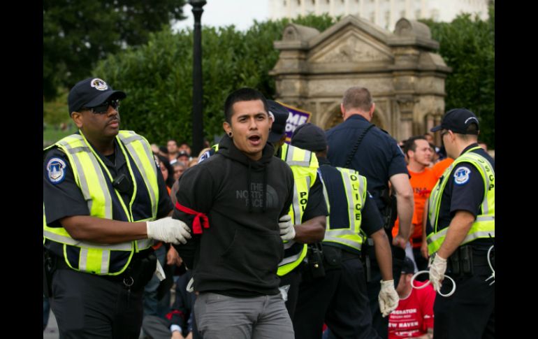 Internacional | Son detenidos por interferir con el tránsito vial en las inmediaciones del Capitolio Arrestan a 200 en marcha por la reforma migratoria Son detenidos por interferir con el tránsito vial en las inmediaciones del Capitolio Por: AP 8 de octubre de 2013 - 18:20 hs Activistas e incluso al menos ocho congresistas fueron arrestados en las afueras del Capitolio. AFP / WASHINGTON, ESTADOS UNIDOS (08/OCT/2013).- Unas 200 personas y al menos ocho congresistas demócratas fueron arrestados el martes por detener el tránsito vial con una marcha hasta el Capitolio para solicitar a la cámara baja la aprobación de una reforma que permita la naturalización de los inmigrantes que ingresaron a Estados Unidos sin autorización. La marcha ocurrió justo después de que la banda mexicana Los Tigres del Norte ofreciera un concierto gratuito de casi dos horas en el National Mall, el complejo de monumentos en la capital, al que asistieron congresistas de ambos partidos. Entre los detenidos se encuentran los representantes demócratas John Lewis (Georgia), Luis Gutiérrez (Illinois), Raúl Grijalva (Arizona), Keith Ellison (Minnesota), John Crowley y Charles Rangel (ambos de Nueva York). Ricardo Ramírez, portavoz del Centro para el Cambio Comunitario, informó que los legisladores demócratas Al Green (Texas) y Jan Schakowsky (Illinois) también fueron arrestados. Un portavoz de la policía del Congreso dijo que los arrestos ascienden a cerca de 200, y que los arrestados enfrentan cargos de obstrucción a la vía pública. Grupos como la Coalición Migratoria de Nueva York y Farmworker Justice confirmaron en correos electrónicos las detenciones de varios de sus dirigentes. Gutiérrez dijo previamente que planeaba dejarse arrestar "para que el presidente de la cámara baja (el republicano por Ohio John Boehner) libere al Congreso y apruebe la reforma migratoria". La Casa Blanca dijo en un comunicado que "llegó la hora para que los republicanos en la cámara baja pongan la política a un lado y se unan a los demócratas para arreglar el sistema migratorio disfuncional". Los Tigres del Norte apoyan la reforma migratoria Los arrestos ocurrieron después de que la afamada agrupación de música regional mexicana, Los Tigres del Norte, interpretara una veintena de canciones dedicadas exclusivamente a la inmigración ilegal. Los Tigres del Norte interpretaron clásicos como "De Paisano a Paisano", "Tres Veces Mojado", "Dos Patrias", "Mojado Acaudalado", "César Chávez", "Jefe de Jefes" y "La Jaula de Oro", la cual tocaron junto a la cantautora mexicano-estadounidense Lila Downs en el escenario. La jefa de la bancada demócrata en la cámara baja, Nancy Pelosi, presentó a Los Tigres de Norte en el escenario. "Queremos un voto en el pleno de la cámara ahora. Exíjanlo porque es el momento de hacerlo", dijo la congresista por California a la audiencia, rodeada de al menos 20 congresistas de su partido. El Partido Republicano estuvo representado por los congresistas de Florida Ileana Ros-Lehtinen y Mario Díaz-Balart, y los de California Jeff Denham y David Valadao. "Esta es una misión sin diferencias partidistas, porque nos une a todos", dijo Ros-Lehtinen. Pero otras voces en el Partido Republicano criticaron con dureza el concierto y la marcha. El senador por Alabama Jeff Sessions dijo que "hay algo extraño sobre líderes de la cámara como Nancy Pelosi protestando en el Mall para darle empleos a inmigrantes ilegales y empujar una legislación que reduce las oportunidades laborales para los estadounidenses". La salvadoreña de 24 años Maura Ramos dijo que acudió al recital porque "aunque probablemente no logre la reforma migratoria, los ponemos a pensar. Si nos quedamos callados, no va a pasar nada". Ramos acudió al concierto con su hijo de tres años y una prima antes de entrar a trabajar en un restaurante. "Tuve suerte de trabajar en la tarde, porque de lo contrario no hubiera podido venir a ver a Los Tigres", agregó. El Congreso mantiene en el limbo a la reforma migratoria, ya que la mayoría republicana en la cámara baja se ha mostrado reacia a debatir el proyecto de ley aprobado por el Senado en junio, el cual concede a los inmigrantes sin papeles la opción de la naturalización. Un sector importante de republicanos se opone a la idea de conceder la naturalización, porque lo ven como un premio a personas que incumplen leyes estadounidenses. Boehner ha reiterado que solo traerá al pleno un proyecto de ley migratorio que cuente con el apoyo mayoritario de 233 miembros de su bancada. Temas Norte América Estados Unidos Manifestaciones en el mundo Reforma migratoria Lee También ¿Bad Bunny fuera del Super Bowl? Este sería el show alternativo Poza Rica, inundado por desbordamiento del río Cazones Bad Bunny permanece sentado durante "God Bless America" y enciende las redes Lista actualizada de selecciones que ya clasificaron al Mundial 2026 Recibe las últimas noticias en tu e-mail Todo lo que necesitas saber para comenzar tu día Registrarse implica aceptar los Términos y Condiciones