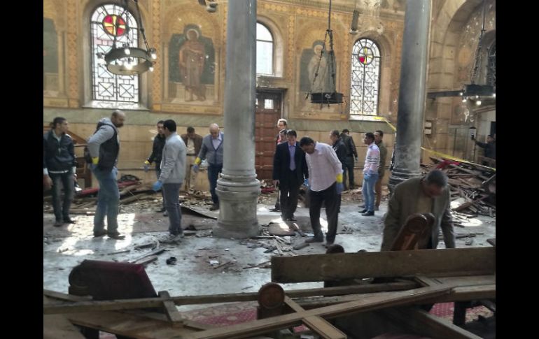 EL CAIRO, EGIPTO (11/DIC/2016).- Al menos 25 personas murieron hoy y otras 49 resultaron heridas en un atentado contra el complejo eclesiástico donde se encuentra la Catedral cristiana copta de El Cairo, dijo a efe el portavoz del Ministerio de Sanidad, Sharif Wadia.Según Wadia, que visitó el lugar junto al ministro del Interior, Magdy Abdelgafar, entre los heridos hay numerosas personas en estado grave.Una fuente de seguridad dijo a Efe que el atentado fue perpetrado con un artefacto explosivo colocado en la puerta de la Iglesia de San Pedro, situada junto a la Catedral copta de San Marcos y la sede del patriarca de la Iglesia Ortodoxa Copta, Teodoro II, en el barrio de Al Abasiya.La explosión tuvo lugar durante el transcurso de una misa en la que participaba un gran número de fieles, según la fuente, que explicó que la entrada de la iglesia donde se colocó el explosivo, da a la transitada calle Ramsis y no al interior del complejo catedralicio.Las fuerzas de seguridad han impuesto un cordón en torno a la zona donde han acudido numerosas ambulancias.El diario egipcio Youm al Sabaa mostró imágenes del interior de un templo ortodoxo en el que se pueden ver los destrozos causados por la explosión y manchas de sangre en el suelo.Las fuente de seguridad agregó que la policía está registrando la zona por temor a que haya más bombas.Hasta el momento ningún grupo ha reivindicado el ataque.Este atentado se produce dos días después de la muerte de seis policías en otro ataque con bomba cerca de las Pirámides de Guiza, en el oeste de El Cairo, que fue asumido el casi desconocido grupo Movimiento de los Brazos de Egipto-Hasm ("Determinación").Las fuerzas de seguridad egipcias hacen frente a recurrentes atentados terroristas, especialmente en la península del Sinaí, desde julio de 2013.Sin embargo, los atentados contra civiles o cristianos no son habituales en el país.
