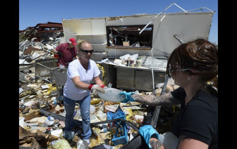 Internacional | Sólo cinco de las nueve personas fallecidas han sido identificadas Aumenta a nueve el número de muertos por tornados en Oklahoma Sólo cinco de las nueve personas fallecidas han sido identificadas Por: NTX 1 de junio de 2013 - 15:18 hs Se ha elevado el número de muertos por el impacto de varios tornados en Oklahoma, informan las autoridades. EFE / OKLAHOMA, ESTADOS UNIDOS (01/JUN/2013).- A nueve personas, entre ellos dos menores de edad, se elevó hoy el número de muertos por el impacto de varios tornados en Oklahoma, informaron autoridades estatales. Al menos cinco tornados azotaron la noche del viernes a la ciudad de Oklahoma y su zona metropolitana, causando destrucción e inundaciones a su paso. La Oficina Forense de Oklahoma detalló que el fenómeno meteorológico dejó nueve muertos, entre ellos una madre y sus dos hijos menores de edad. Explicó que sólo cinco de las nueve personas fallecidas han sido identificadas e invitó a quienes hallan perdido familiares durante el impacto de los tornados llamar al teléfono 405-239-7141. Unos 17 tornados de categoría EF-3 con vientos de entre 219 y 265 kilómetros por hora asolaron los estados de Missouri, Illinois y Oklahoma, dejando miles de construcciones destruidas a su paso. De acuerdo con los reportes hospitalarios, unas 104 personas resultaron heridas, cuatro de ellas de gravedad. Las autoridades policíacas indicaron que al menos siete personas perdieron la vida dentro de sus vehículos en un intento por huir de los meteoros. "Simplemente no hay descanso", señaló la portavoz de la ciudad de Oklahoma, a sólo casi dos semanas de que dos tornados destruyeran el suburbio de Moore en la zona metropolitana. Los vuelos en el aeropuerto de la ciudad de Oklahoma se están normalizando "lentamente", según autoridades de la terminal aérea, mientras que unas 212 mil personas permanecen este sábado sin energía eléctrica en ese estado. En Missouri, más de 200 caminos y carreteras permaneces cerrados debido a las inundaciones, en tanto la ciudad de Saint Charles fue la más afectada por los tornados. El gobernador de Missouri, Jay Nixon, declaró estado de emergencia luego de los daños ocasionados por al menos dos de los meteoros. Temas Norte América Tornados EU Estados Unidos Lee También Chivas y América empatan en partido amistoso 'Chicharito' marca su primer gol al América en partido amistoso "Raymond" baja su potencia, pero tocará tierra en horas En Hidalgo, caminos destrozados complican rescates y ayuda Recibe las últimas noticias en tu e-mail Todo lo que necesitas saber para comenzar tu día Registrarse implica aceptar los Términos y Condiciones