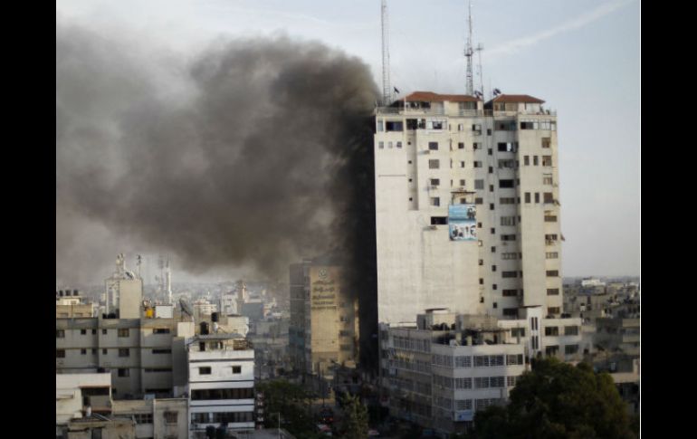 Internacional | Aviones israelíes no tripulados atacan edificios y calles transitadas Aviación israelí ataca edificio sede de televisiones árabes en Gaza Según fuentes hospitalarias, al menos un periodista de Al Aqsa TV resultó muerto y otras seis personas heridas Por: EFE 19 de noviembre de 2012 - 08:16 hs El edificio de televisiones árabes continúa humeando luego del ataque israelí. REUTERS / GAZA, PALESTINA (19/NOV/2012).- Aviones de combate israelíes bombardearon una torre de 14 plantas en el centro de la ciudad de Gaza, que alberga la sede de la televisión Al-Aqsa de Hamás y otras cadenas de información árabes, entre ellas Al Arabiya y MBC de Arabia Saudí, informaron testigos presenciales. Según fuentes hospitalarias, al menos un periodista de Al Aqsa TV resultó muerto y otras seis personas heridas en el ataque, que alcanzó la segunda planta del edificio Al Sharuk, donde realizan también sus conexiones varias televisiones internacionales. El techo del edificio había sido ya bombardeado el domingo por la aviación israelí, en un ataque que no había causado víctimas pero sí cuantiosos daños materiales. Desde entonces las autoridades de la franja habían dado orden de evacuarlo, aunque algunos periodistas continuaban trabajando en el mismo, debido a la imposibilidad de hacerlo en otra parte. Esta vez los aviones atacaron la segunda planta del edificio, encima de la cafetería, que sufrió grandes destrozos, según se constató en el lugar del ataque. La tercera planta también resultó seriamente dañada. Todo la fachada se encuentra ennegrecida y de la segunda planta sale una humareda negra, mientras los bomberos buscan con linternas a otras posibles víctimas. Camilleros con botellas de oxígeno y mascarillas rastrean también entre los cascotes. La ofensiva israelí "Pilar Defensivo" entró en su sexta jornada con un recrudecimiento de los bombardeos sobre Gaza. Hasta el momento 97 palestinos han muerto desde el comienzo de la operación el pasado miércoles y cerca de 900 han resultado heridos. De acuerdo al portavoz del Ministerio de Sanidad de Hamás, Ashraf Al-Qedra, entre los fallecidos desde el inicio de la ofensiva hay 24 menores, diez mujeres y doce ancianos, mientras que 750 de los heridos son en su mayoría niños y mujeres. Las últimas víctimas mortales se registraron en cuatro bombardeos aéreos israelíes a primera hora de la tarde, de acuerdo a fuentes médicas y testigos presenciales. Un avión no tripulado acabó con las vidas de dos hermanos cuando la motocicleta en la que viajaban fue alcanzada por un misil en la localidad de Jan Yunes, al sur de Gaza, ataque en el que resulto herido un menor, según testigos. En el barrio Tal al-Hawa de Gaza, otro aparato sin piloto israelí atacó un vehículo identificado con un distintivo de prensa en el que murió uno de sus ocupantes. Temas Medio Oriente Conflicto Israel-Palestina Franja de Gaza Israel Lee También Trump amenaza con 'erradicar' a Hamás si no respeta la tregua con Israel Netanyahu reacciona al bombardeo de Israel a Gaza pese a la tregua A pesar de tregua, Israel bombardea Gaza matando a 45 palestinos Van más de mil personas multadas por tirar basura Recibe las últimas noticias en tu e-mail Todo lo que necesitas saber para comenzar tu día Registrarse implica aceptar los Términos y Condiciones