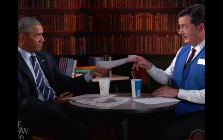 GUADALAJARA, JALISCO (19/OCT/2016).- "Un amigo está a punto de perder su empleo, así que le ayudé a buscar otra carrera", dice el comediante Stephen Colbert al presentar al presidente Barack Obama, quien acudió a su programa "The Late Show" del canal CBS.Como parte del 'sketch', Colbert pretende ser Randy, un reclutador que le ayudará a Obama a practicar una entrevista de empleo y a pulir su currículo."55 años, ¡edad difícil para empezar una carrera! Veamos.." Entre risas del público, Randy le dice "no veo ningún ascenso en los últimos ocho años, ¿puede explicar eso?"A lo que el presidente responde: "honestamente, ya no había posibilidades de ascenso en mi último trabajo, la única con una posición más poderosa era mi esposa."La siguiente pregunta del reclutador es "dime por qué te vas, ¿es cierto que ya no te puedes quedar en tu trabajo?" "Bueno, me voy porque así lo marca la 22 Enmienda de la Constitución de los Estados Unidos", responde el mandatario."¿Dónde naciste?", no lo dice tu currículo" es la siguiente pregunta que provoca muchas risas entre el público, a lo que Obama en tono serio le pide que pase a la siguiente cuestión."Entonces, ¿cómo le gustaría que fuera su siguiente oficina?" preunta Randy. "Me gustaría una oficina en esquina... o al menos, que tuviera esquinas.. ya sabes", dice Obama en referencia a la Oficina Oval, lo que provoca más risas en la audiencia.A continuación, Randy le pide que describa los logros que podrían interesar a futuros empleadores. "Bueno, logré pactos internacionales contra el cambio climático y también contra armas nucleares..." "Ok, mejor pongamos 'Hábil en Microsoft Excel', ¿algo más?", pregunta Randy."También restablecí las relaciones con Cuba después de 50 años" dice el mandatario. "A eso le pondremos 'Fluidez en idioma Español'", replica el reclutador."¿Y qué me dice sobre premios y reconocimientos?" le cuestiona, a lo que Obama responde que tiene más de 30 títulos honorarios y también el Premio Nobel de la Paz."Oh excelente, ¿y por qué se lo dieron?". En tono serio, Obama responde que aún no lo sabe, lo que desata las risas.Para finalizar la entrevista de práctica, Randy le pregunta quién le podría dar algunas referencias sobre Obama, a lo que él responde que hay unos pavos que le deben "unos cuantos favores", esto por la tradición anual de perdonar la vida a un pavo en Acción de Gracias.Entre sus respuestas, Obama no dejó pasar la oportunidad de llamar a los jóvenes a votar en las próximas elecciones, porque de eso depende que continúe el trabajo de los últimos ocho años, dijo el mandatario."Así que finalmente, ¿qué le gustaría hacer?", le cuestiona el reclutador. "Terminar esta entrevista", tras lo que el presidente se levanta a pesar de que Randy le dice que sí le ofrecerá trabajo.EL INFORMADOR / MARÍA JOSÉ VILLANUEVA