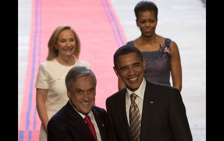 Internacional | A la reunión entre Obama y Piñera asistirán cinco miembros de cada comitiva Barack Obama arriba a palacio presidencial La Moneda Después de la reunión, el presidente chileno emitirá un esperado discurso dirigido a América Latina Por: AFP 21 de marzo de 2011 - 10:58 hs Barack Obama y su esposa fueron recibidos en La Moneda por Sebastián Piñera. EFE / SANTIAGO, CHILE (21/MAR/2011).- El presidente de Estados Unidos, Barack Obama, arribó al palacio presidencial de La Moneda en Santiago, para sostener una reunión bilateral con el mandatario chileno Sebastián Piñera. Obama llegó al señorial palacio presidencial ubicado en el pleno centro de Santiago, en compañía de su esposa Michelle. El mandatario fue recibido con honores militares a la entrada del palacio y saludado -en inglés- por la guardia del palacio. Tras el saludo, ambos presidentes ingresaron al palacio para sostener una reunión bilateral, mientras las dos primeras damas se separaron para visitar un colegio y un museo en Santiago. A la reunión entre Obama y Piñera asistirán otros cinco miembros de cada comitiva. Luego, en el Centro Cultural Palacio La Moneda, a un costado de la sede del gobierno, Piñera emitirá un esperado discurso dirigido a América Latina, donde propondrá una relación de igual a igual con la región. Obama llegó a Chile proveniente de Brasil, el primer paso de una gira por América Latina, que incluye también una visita a El Salvador Temas América Latina Chile Barack Obama Sebastián Piñera Recibe las últimas noticias en tu e-mail Todo lo que necesitas saber para comenzar tu día Registrarse implica aceptar los Términos y Condiciones