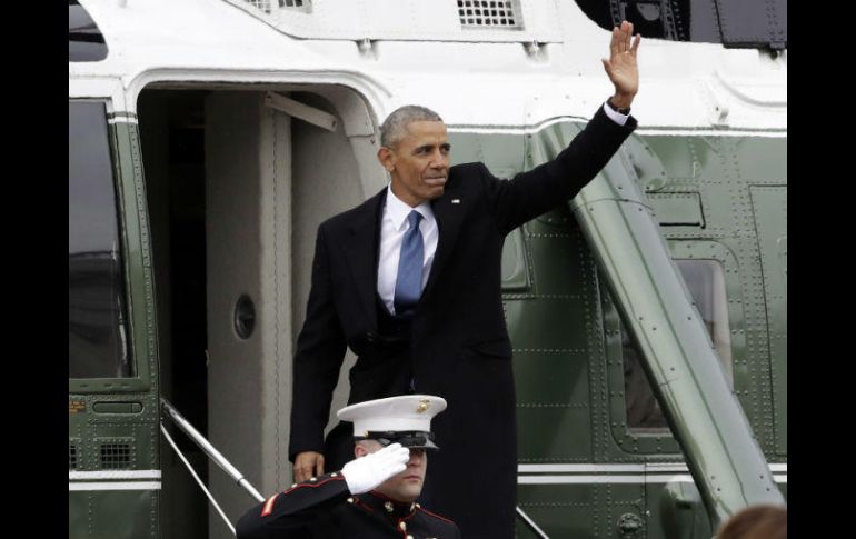 WASHINGTON, ESTADOS UNIDOS (20/ENE/2017).- El ex presidente Barack Obama abordó este viernes un helicóptero de la Marina para dirigirse a la base Aérea de Andews y desde allí dejar Washington luego de ocho años en la Casa Blanca.Acompañado de su familia, el ex mandatario se tomará un periodo de vacaciones en Palm Springs, en California. Obama y su esposa Michelle fueron despedidos por el nuevo presidente, Donald Trump, y su esposa Melania a un costado del Capitolio, donde se celebró la ceremonia de investidura.Habrá un pequeño acto de despedida en la base aérea de Andrews, a las afueras de Washington, donde se reunirán personal de la Casa Blanca, asesores y amigos para dar un último adiós a los Obama.