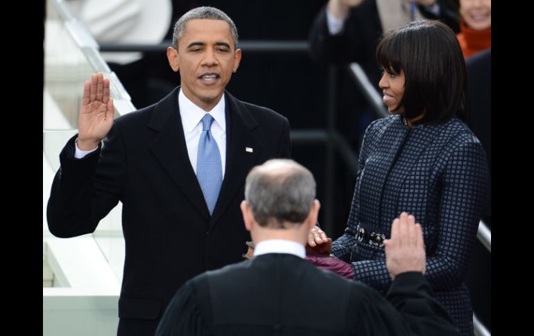 Internacional | En una ceremonia multitudinaria, Obama jura como presidente de EU hasta enero de 2017 Barack Obama jura públicamente su segundo mandato Aunque la Constitución señala que su mandato comienza el 20 de enero, el evento público fue hasta hoy lunes Por: AFP 21 de enero de 2013 - 09:50 hs WASHINGTON, ESTADOS UNIDOS (21/ENE/2013).- El presidente de Estados Unidos, Barack Obama, juró oficialmente el cargo para un segundo mandato que concluirá en enero de 2017 acompañado de su mujer y sus hijas en una multitudinaria ceremonia en la explanada del Capitolio estadunidense. Según se informa en algunos medios locales, unas 800 mil personas acompañaron al mandatario en el evento, un récord para una segunda investidura, pero lejos de los casi dos millones que el 20 de enero de 2009 se congregaron en Washington para ser testigos del juramento histórico de Obama como el primer presidente negro del país. Obama, de 51 años, tomó el juramento por segunda vez, ahora en público, tras haber sido investido oficialmente en la Casa Blanca el domingo, como estipula la Constitución. "Yo, Barack Hussein Obama, prometo preservar, proteger y defender la Constitución", leyó Obama sobre dos Biblias, ante el presidente de la Corte Suprema, John Roberts. La esposa de Obama, Michelle, sostuvo las dos Biblias, una que perteneció al presidente Abraham Lincoln y la otra al luchador por los derechos civiles de los negros Marthin Luther King Jr. Con un abrigo oscuro y corbata azul marino, Obama apareció relajado y sonriente ante una multitud de centenares de miles de personas, inferior sin embargo al récord de 1.8 millones de personas de hace cuatro años, cuando asumió por primera vez. Ayer, en una breve ceremonia privada en el Salón Azul de la Casa Blanca, Obama juro ante el magistrado John Roberts, presidente del Tribunal Supremo, con una Biblia propiedad de la familia de su mujer, su segundo mandato. Tras el juramento formal, que duró apenas un minuto, el presidente besó a su esposa y a sus hijas, y le dijo sonriendo a Sasha, la pequeña: "Lo conseguí". De acuerdo con la Constitución, el segundo mandato de Obama comienza automáticamente el 20 de enero, pero las celebraciones y la ceremonia pública de juramento frente al Capitolio se han trasladado hasta estel 21 de enero. En enero de 2009 Obama se convirtió en el primer presidente negro de la Historia de Estados Unidos. Temas Norte América Estados Unidos Barack Obama Toma de posesión de Barack Obama Lee También Lluvias dejan 29 muertos en un día en México Trump anuncia aranceles del 100% para China por su postura comercial 'hostil' ¿Bad Bunny fuera del Super Bowl? Este sería el show alternativo Poza Rica, inundado por desbordamiento del río Cazones Recibe las últimas noticias en tu e-mail Todo lo que necesitas saber para comenzar tu día Registrarse implica aceptar los Términos y Condiciones