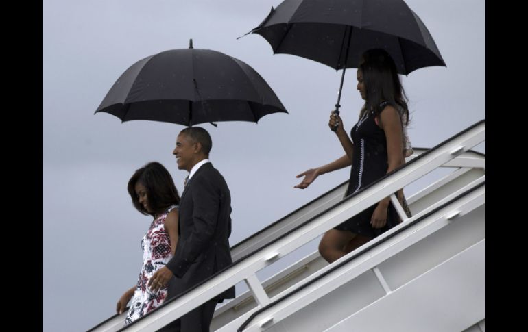 Internacional | El presidente de EU estará en ese país hasta el próximo 22 de marzo Barack Obama llega a Cuba para visita oficial El presidente de EU estará en ese país hasta el próximo 22 de marzo Por: EFE 20 de marzo de 2016 - 13:27 hs LA HABANA, CUBA (20/MAR/2016).- El presidente de Estados Unidos, Barack Obama, llegó hoy a Cuba, donde cursará hasta el día 22 una histórica visita para sellar el proceso de acercamiento con la isla. El Air Force One, el avión presidencial estadounidense donde Obama viajó acompañado de su esposa Michelle, sus hijas Malia y Sasha y su suegra Marian Robinson, aterrizó en el Aeropuerto Internacional de La Habana sobre las 16:20 hora local (20:20 GMT) Recibió al mandatario el canciller cubano, Bruno Rodríguez, acompañado de la directora para América del Norte del Ministerio de Exteriores, Josefina Vidal; el embajador de Cuba en EU, José Ramón Cabañas, y el encargado de negocios de la Embajada de Estados Unidos en la isla, Jeffrey DeLaurentis. La lluvia acompañó la llegada de Obama y su familia a la isla, por lo que tuvieron que bajar las escalerillas del avión con paraguas negros. El canciller cubano obsequió a la primera dama un ramo de rosas blancas, además de otro de rosas rosadas a las hijas del presidente, y uno de rosas rojas para la suegra del mandatario. Tras aterrizar en la capital cubana, el presidente Obama dedicará su primera tarde a visitar La Habana Vieja, previsiblemente junto a su familia. En la Catedral, ubicada en el casco histórico de la ciudad, los Obama serán recibidos por el cardenal Jaime Ortega. La agenda oficial de Obama comenzará mañana lunes, en una jornada en la que el presidente de Estados Unidos se reunirá con su homólogo cubano, Raúl Castro, en el Palacio de la Revolución de la capital cubana, tras una ceremonia de recibimiento. Está previsto que al término de su reunión, Obama y Raúl Castro hagan una declaración a los medios. Después Obama participará en un encuentro con empresarios estadounidenses y "cuentapropistas", como se conoce en la isla a los emprendedores que han emergido con la controlada apertura a la iniciativa privada puesta en marcha por Raúl Castro como parte de las reformas económicas de la isla. El martes 22, último día de la visita de Obama, el presidente de Estados Unidos ofrecerá una conferencia dirigida al pueblo cubano en el Gran Teatro de La Habana, que será retransmitida en vivo por la televisión oficial de la isla. Ese mismo día tendrá también un encuentro con representantes de la sociedad civil independiente, incluidos representantes de la disidencia interna. Obama y su familia se despedirán de Cuba en la tarde del martes tras asistir a un simbólico partido de béisbol en el Estadio Latinoamericano de La Habana entre una selección local y el Tampa Bay Rays de Florida (EU). Obama es el primer presidente de Estados Unidos que visita Cuba en casi 90 años y el único que lo ha hecho desde el triunfo de la revolución castrista en 1959. Temas América Latina Estados Unidos Cuba Barack Obama Relación Cuba-EU Lee También ¿Bad Bunny fuera del Super Bowl? Este sería el show alternativo Poza Rica, inundado por desbordamiento del río Cazones Bad Bunny permanece sentado durante "God Bless America" y enciende las redes Lista actualizada de selecciones que ya clasificaron al Mundial 2026 Recibe las últimas noticias en tu e-mail Todo lo que necesitas saber para comenzar tu día Registrarse implica aceptar los Términos y Condiciones