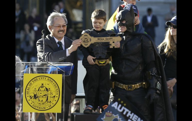 En el proceso, Miles Scott se convirtió en el favorito de las redes sociales y atrajo a miles de seguidores de todo el país, incluso la Casa Blanca."Cuando tienes una enfermedad es muy importante saber que tienes un sistema de apoyo", dijo Gina Futrell, de 51 años y quien padece de esclerosis múltiple. Ella formaba parte de la enorme multitud que se reunió en Union Square para poder ver al pequeño Batman en su día de aventuras. "Yo tengo un sistema de apoyo extremadamente fuerte y espero que él también. Es un pequeño gran héroe".El jefe de policía Greg Suhr pidió la ayuda de "Batkid" (batiniño), quien pasó el día de un sitio del crimen a otro. Acompañado por un imitador adulto de Batman, Batkid rescató a una damisela atrapada en los rieles del tranvía, capturó a Acertijo cuando robó un banco y salvó a Lou Seal, la mascota de los Gigantes de San Francisco. Miles, cuya enfermedad ahora está en remisión, pudo cumplir su sueño gracias a la Fundación Make-A-Wish (Pide un Deseo), la ciudad y voluntarios que deseaban ayudar.El pequeño Batman tuvo escolta oficial y se paseó por la ciudad a bordo de un Lamborghini negro con el escudo del murciélago.La policía detuvo el tránsito y lo acompañó en sus motocicletas. En un mensaje por Twitter, la Casa Blanca le dijo a Batkid "¡Ve por ellos!" y en un video grabado, el presidente Barack Obama le dijo "¡Vamos Miles! ¡A salvar a Ciudad Gótica!".