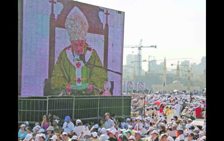 Internacional | Regresa a Roma Benedicto XVI se despide de Líbano con mensaje de paz El Pontífice pidió ante 350 mil personas que cese toda violencia en Medio Oriente Por: REUTERS 17 de septiembre de 2012 - 01:47 hs BEIRUT, LÍBANO (17/SEP/2012).- El Papa Benedicto XVI fue claro con su mensaje: instó, durante una misa en Líbano, a los líderes árabes a trabajar por la reconciliación en Oriente Medio, estremecido por la guerra civil en Siria y una ola de violencia en reacción a una película que satiriza al profeta Mahoma. “Que Dios les dé a su país, a Siria y a Oriente Medio el don de los corazones pacíficos, que silencie las armas y cese toda la violencia”, dijo el Papa en una plegaria tras una misa que, según los organizadores, reunió a unas 350 mil personas. Activistas dijeron que más de 27 mil personas han resultado muertas en Siria durante una revuelta de 18 meses de duración, encabezada por una mayoría sunita contra el presidente Bashar al Assad, quien pertenece a la secta alauita. Pocos de los cristianos que componen alrededor de 10% de la población siria se han sumado a la revuelta. Algunos temen que facilite el ascenso al poder de islamistas hostiles. Dirigiéndose a los fieles en esta ciudad mediterránea cerca del frente de la guerra civil libanesa de 1975 a 1990, Benedicto dijo que los libaneses “conocían demasiado bien la tragedia de un conflicto (...) el llanto de una viuda y un huérfano”. La paz entre las facciones enfrentadas y entre diferentes grupos religiosos en Oriente Medio ha sido el tema central de la visita del Papa Benedicto XVI a Líbano, junto a un llamado a los cristianos para que no abandonen la región a pesar de la guerra y de la creciente presión de los islamistas radicales. “En un mundo donde la violencia deja constantemente a su paso su triste rastro de muerte y destrucción, es urgentemente necesario servir a la justicia y la paz”. Durante su visita de tres días al Líbano, el Papa no hizo referencia a un filme sobre el profeta Mahoma realizado en Estados Unidos y que indignó a muchos musulmanes, desatando violentas protestas en decenas de países, incluido el Líbano, donde una persona murió el viernes. FRASE "Apelo a los países árabes a que propongan soluciones viables que respeten la dignidad, los derechos y la religión de cada persona." Papa Benedicto XVI, líder de la Iglesia Católica. Temas Medio Oriente Papa Benedicto Líbano Lee También Llega "La Niña" y este será su impacto según las predicciones Dr. Simi llega al Vaticano; le entregan peluche al Papa León XIV No puedo tener piedad de ellos: Hugo Alón, víctima de los ataques de Hamas Tren Maya afectó cenotes, reconoce Alicia Bárcena Recibe las últimas noticias en tu e-mail Todo lo que necesitas saber para comenzar tu día Registrarse implica aceptar los Términos y Condiciones